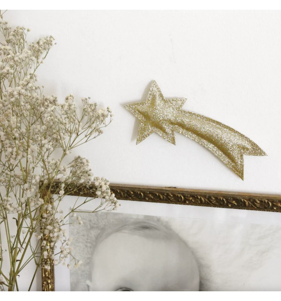 Toute en légèreté, cette étoile filante à paillettes dorées donnera une touche pétillante à votre décoration.