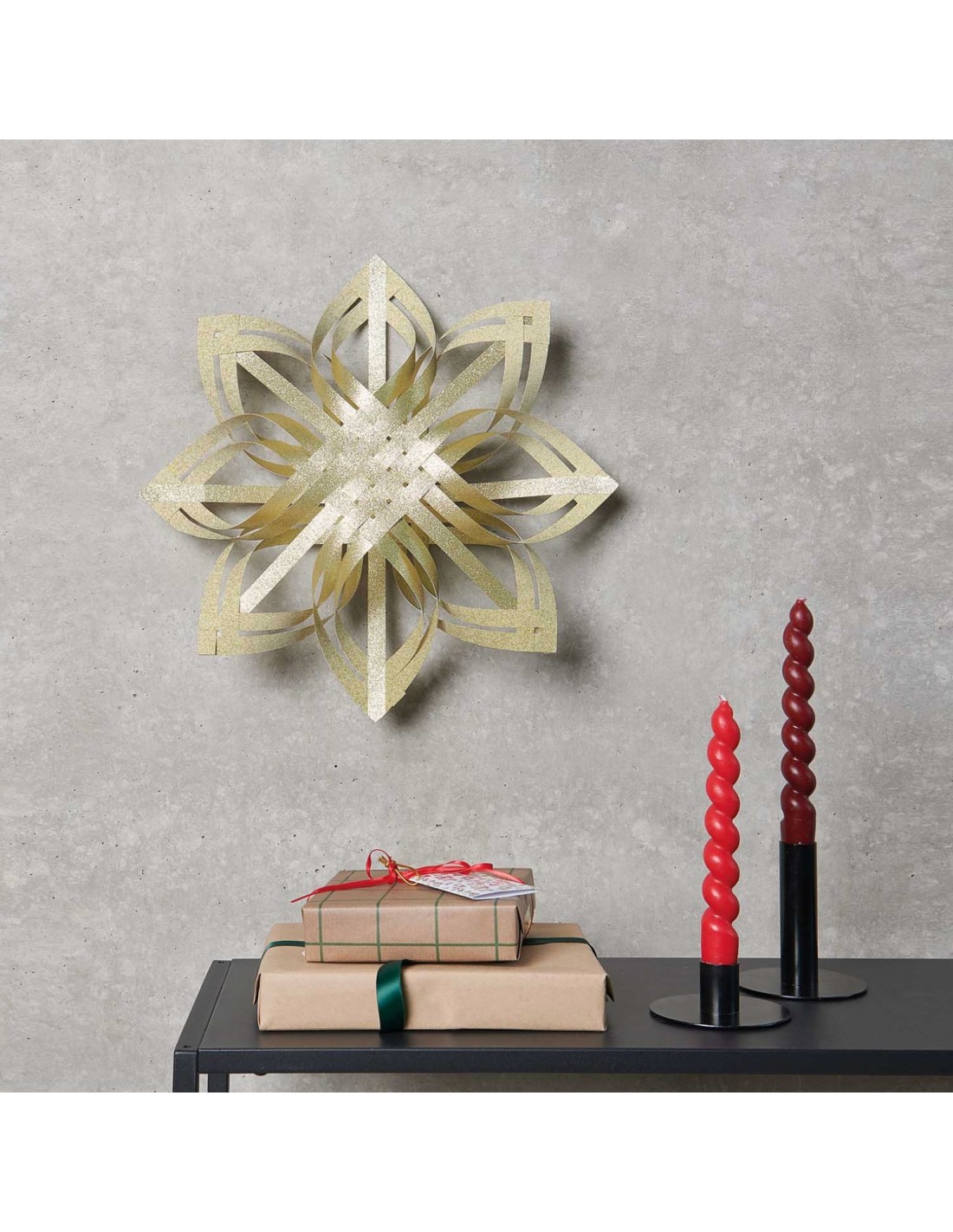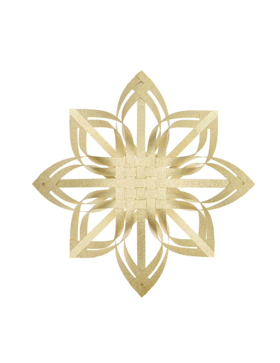 Ce set contient 20 bandes de papier et les explications nécessaires pour monter une jolie étoile dorée de Noël à 8 branches de taille moyenne.