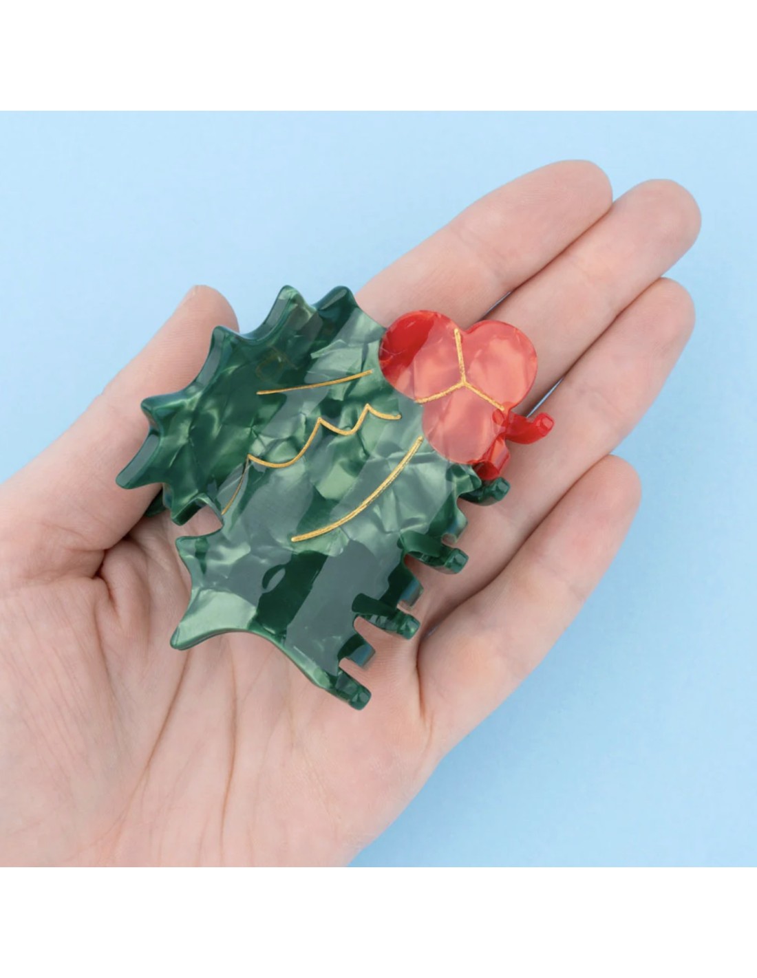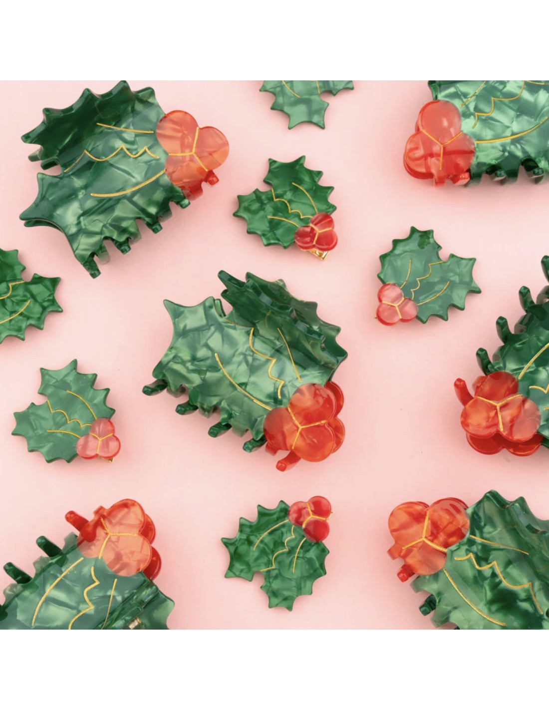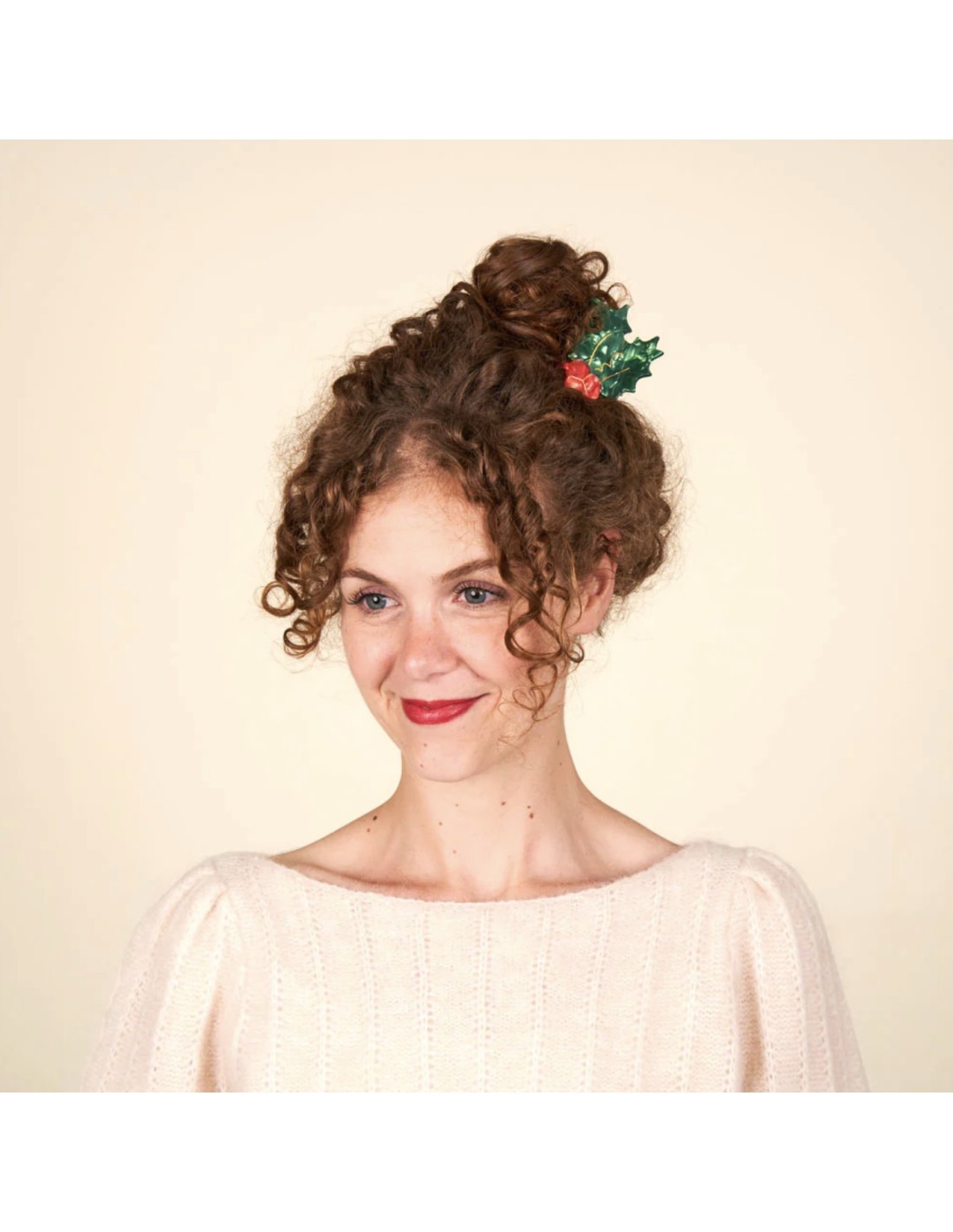 Cette jolie pince à cheveux en forme de houx est signée Coucou Suzette.