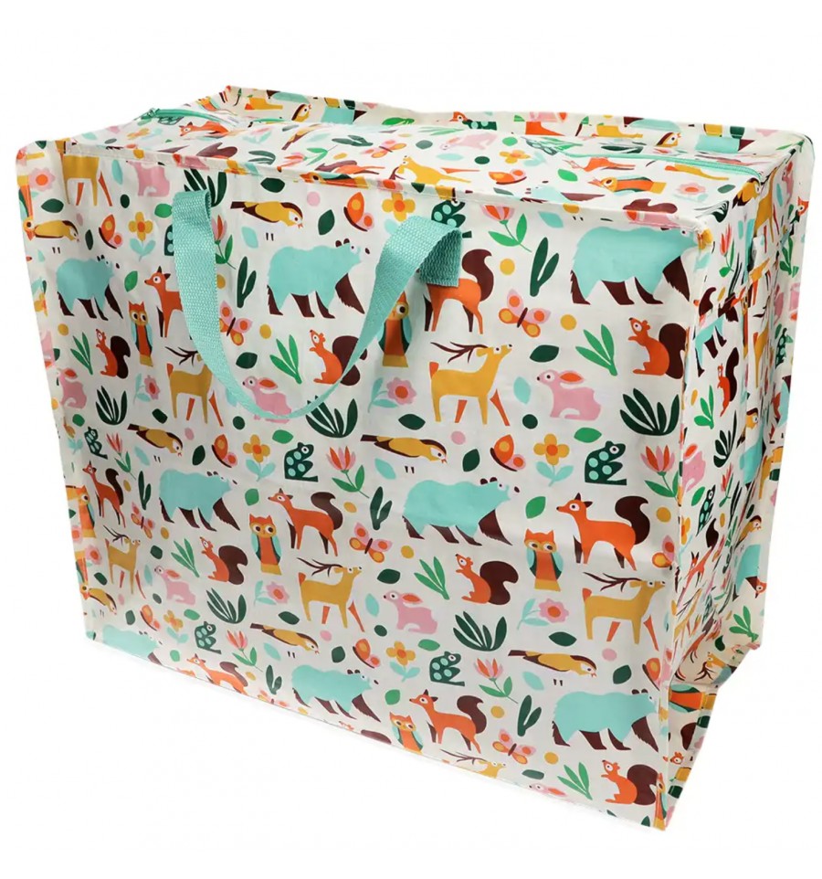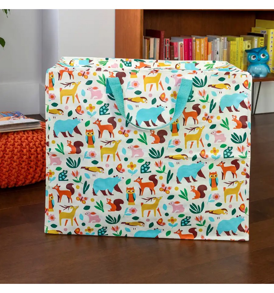 Ce grand sac de rangement est fait pour vous ! Décoré des animaux de la forêt (ours, renard, écureuil, lapin, hibou, cerf) le rangement est également une joie pour les yeux.