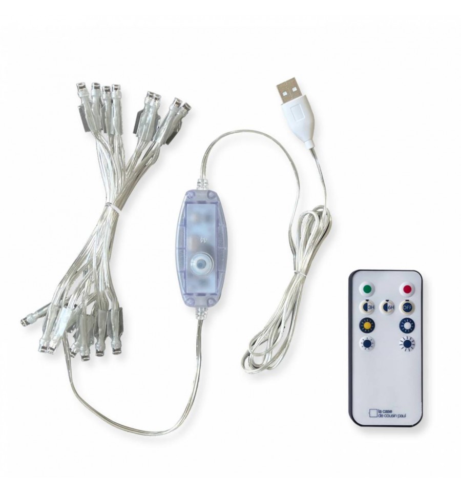 - guirlande programmable : timer à utiliser si vous le souhaitez : 3h ou 6h d’éclairage