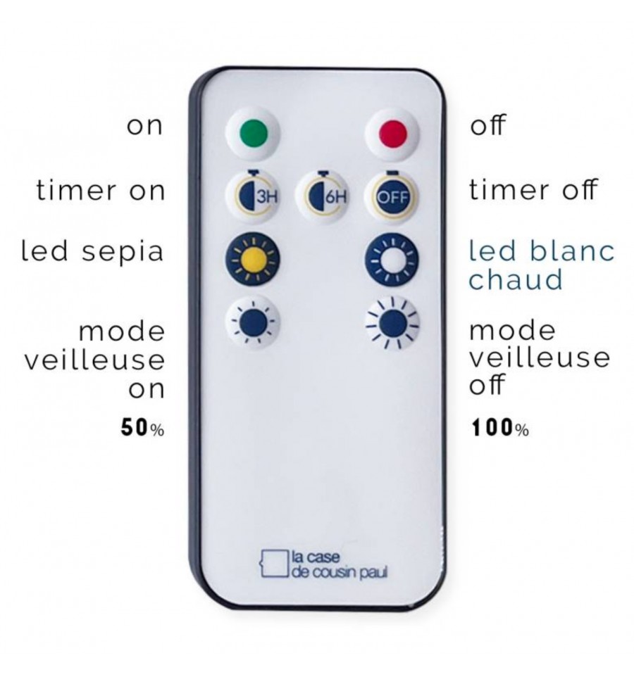 - 2 couleurs de lumière : sépia ou blanc chaud