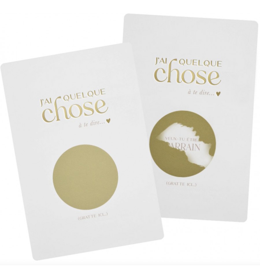 Faites le en tout originalité avec cette jolie carte à gratter : derrière l'espace à gratter, se cache en grosses lettres un message qui ravira le futur parrain.