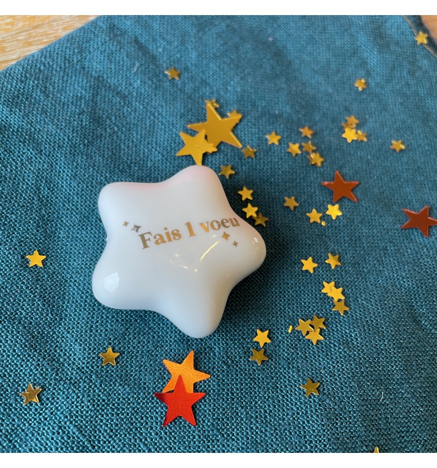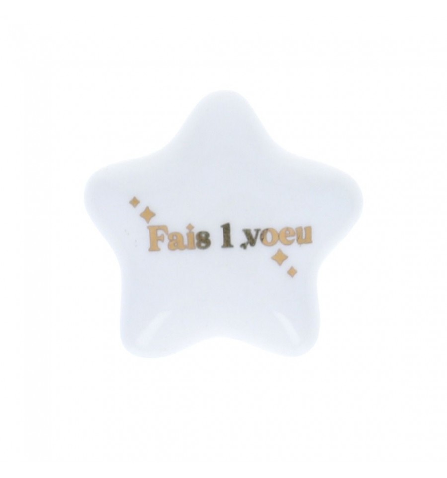Craquez pour cette petite étoile en céramique avec les mots "Fais un vœu" imprimé en doré.