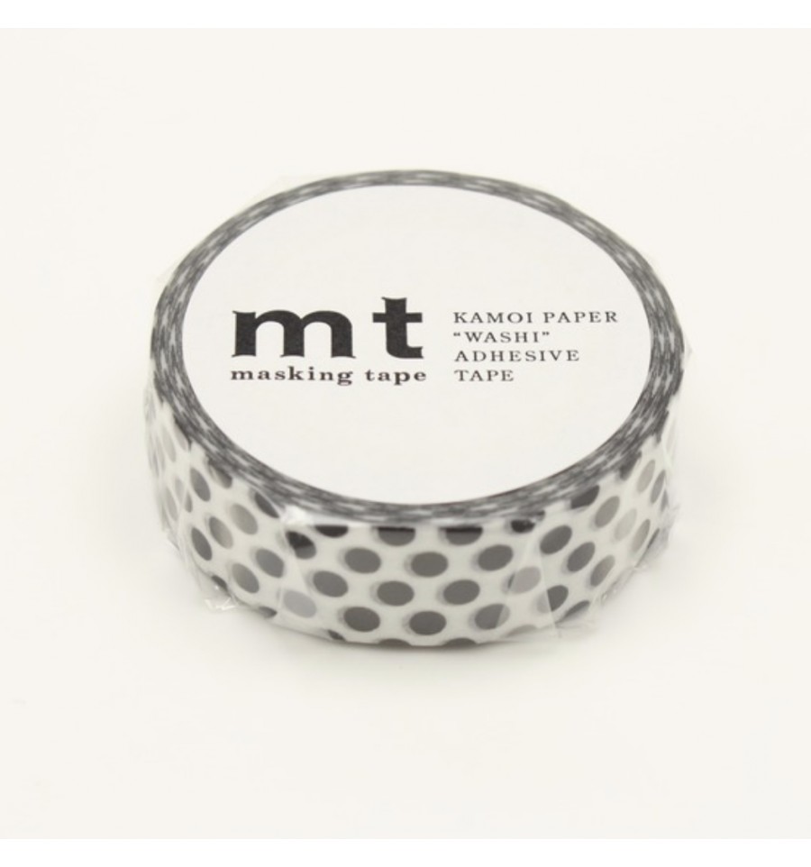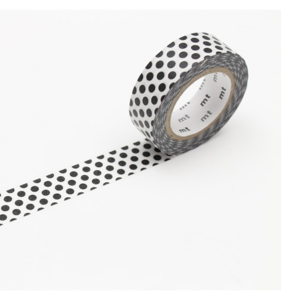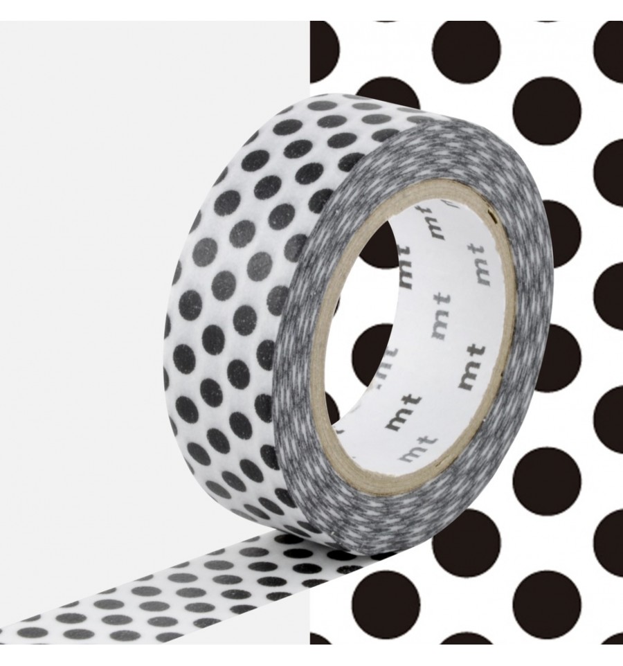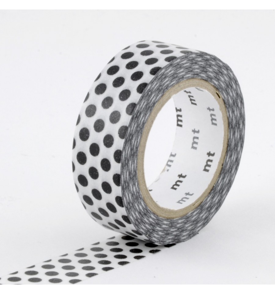 Un rouleau de masking tape à pois qui fait 15 mm de large sur 7 m de long.