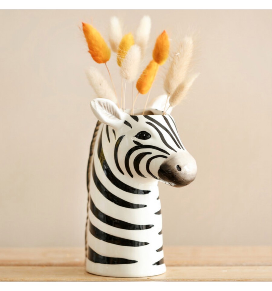 Lisa Angel nous propose un vase en céramique en forme de tête de zèbre qui sera parfait pour réaliser une déco d'intérieur et pour y accueillir un bouquet de fleurs.