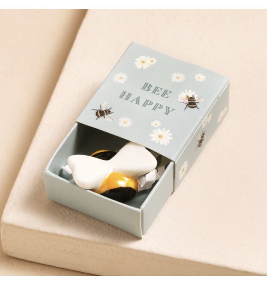 Ici c'est de l'amour et du bonheur que l'on propose, dissimulé dans une jolie boîte en carton bleue " Bee happy", découvrez à l'intérieur une abeille super adorable.