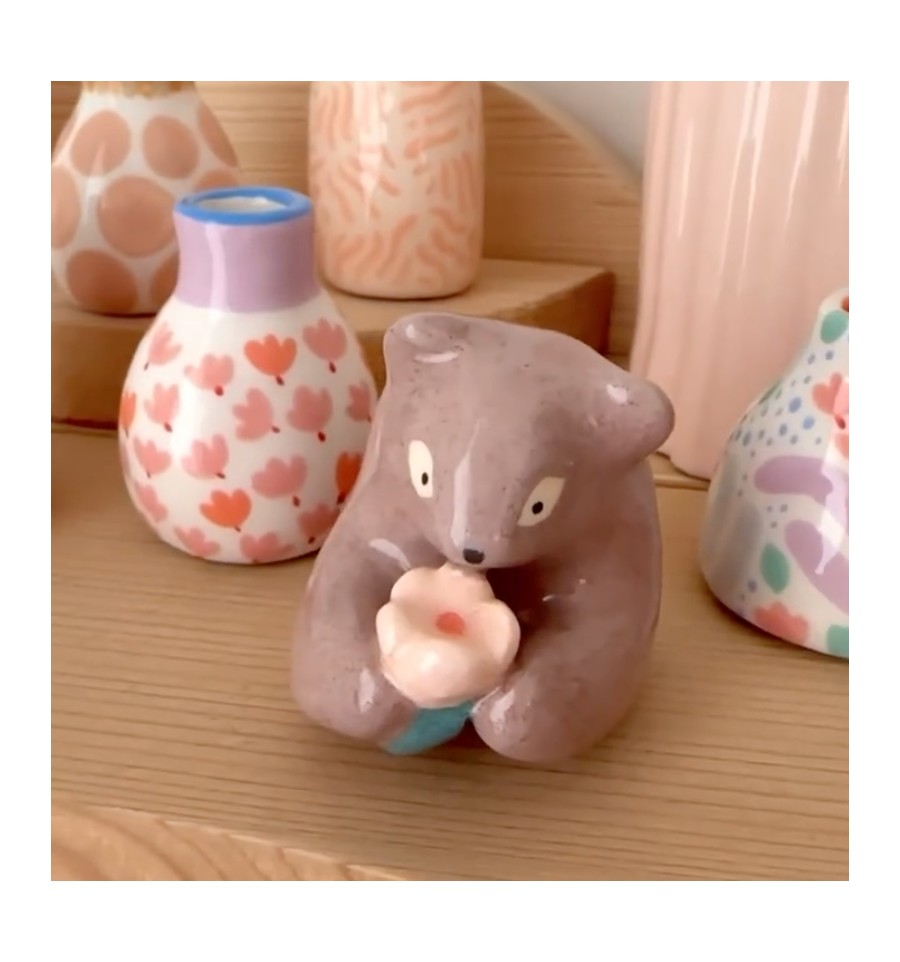 Cet adorable ours en céramique tenant une fleur entre ses pattes fera un objet de décoration idéal.