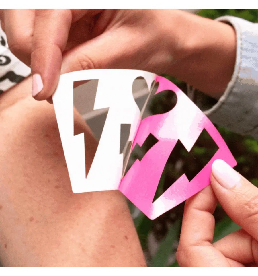 - Décollez le pochoir de son support et positionnez-le sur votre peau