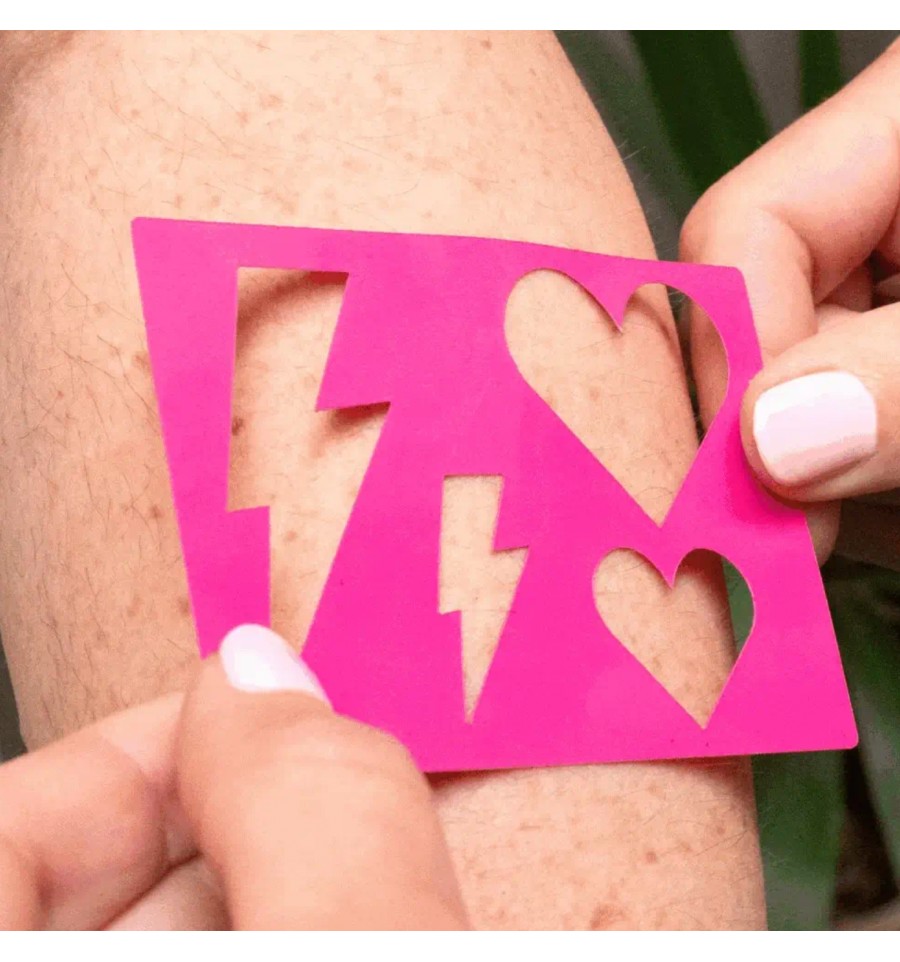 Maintenant ce n'est plus un problème, ces pochoirs en formes de coeurs et d'éclairs sont simples à utiliser, souples (pour s'adapter à chaque parties du visage ou du corps), adhésifs et surtout lavables, donc réutilisables.