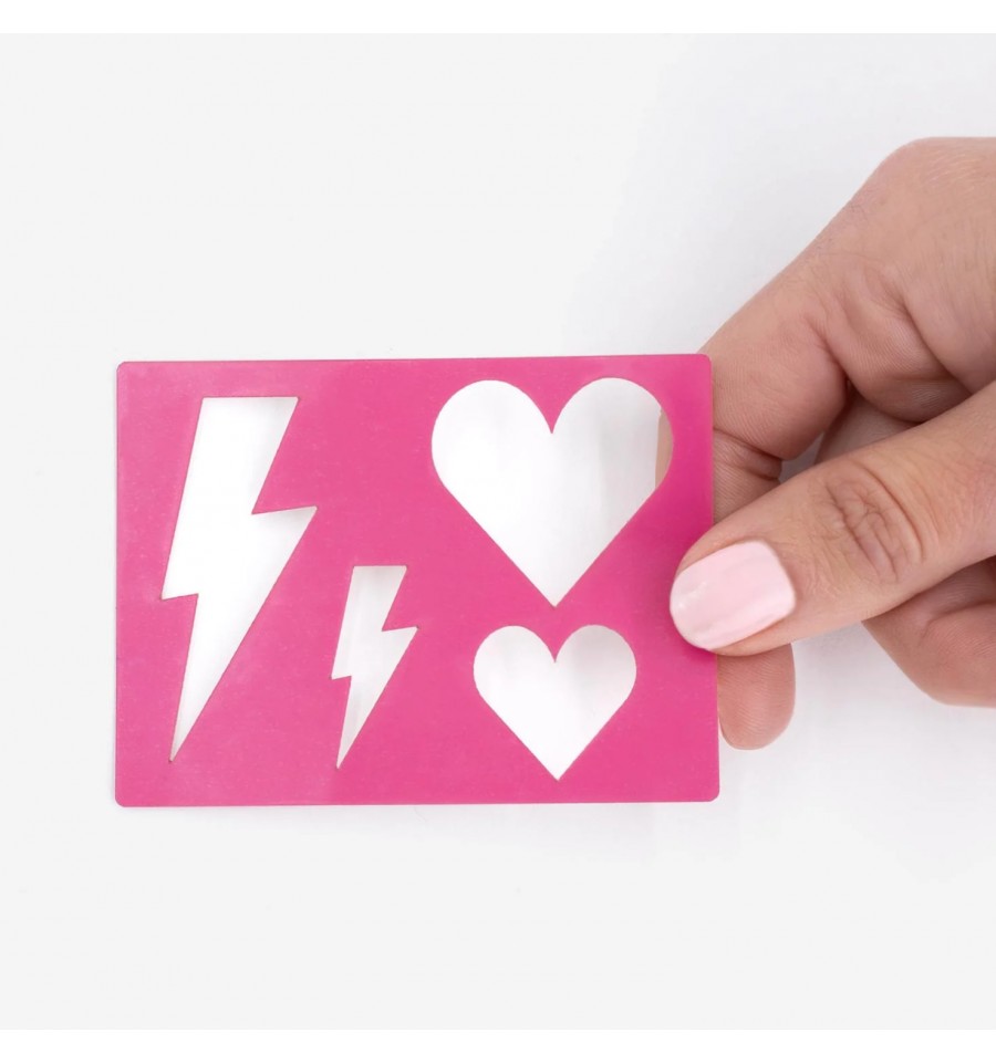 Grâce à ce pochoir coeur et éclair, plus d'excuse pour maquiller comme une reine ! Facile à glisser dans son sac avec ses paillettes, amenez votre nécessaire partout avec vous, amusez-vous et scintillez de mille feux !