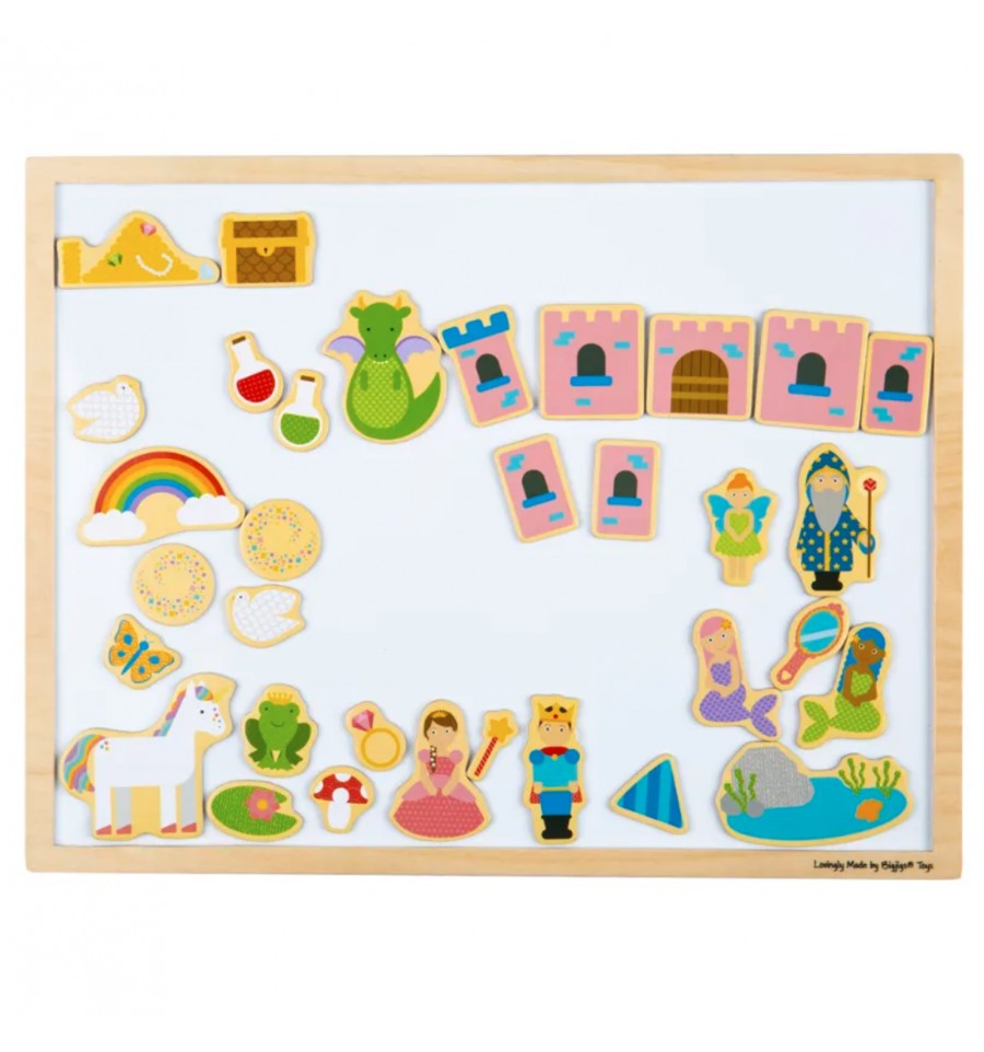 Magnétique et grand format (33 cm x 43 cm), ce tableau blanche permet aux enfants de jouer avec des aimants, par exemple les aimants en bois Bigjigs sur le thême de la forêt.
