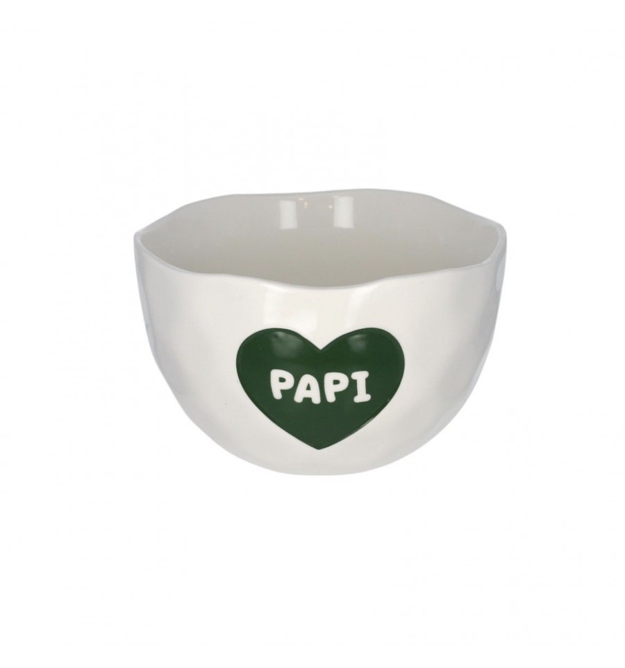 Un bol pour Papi, en voilà une belle idée pour démarrer sa journée du bon pied. Ce Bol "Papi" entouré d'un coeur beau vert saura être le nouveau compagnon de son petit déjeuner !
