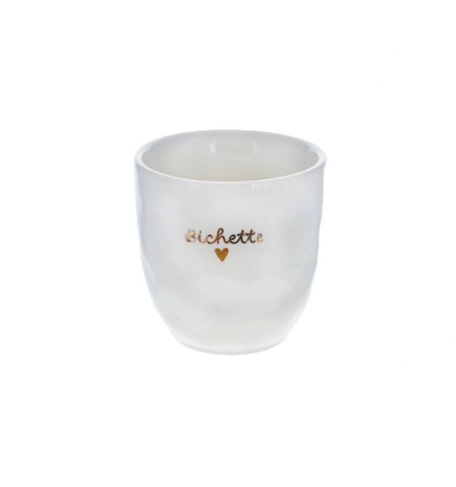 Offrez cette tasse en céramique qui arbore un message tout plein d'amour "Bichette" et un joli coeur doré brillant
