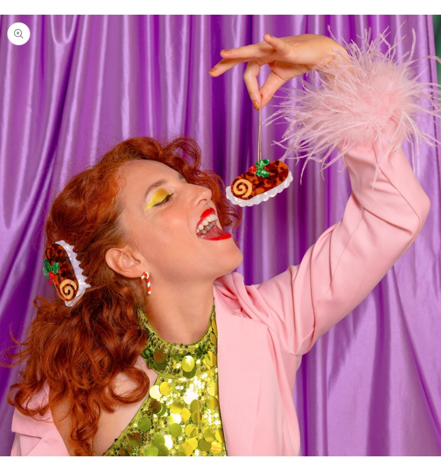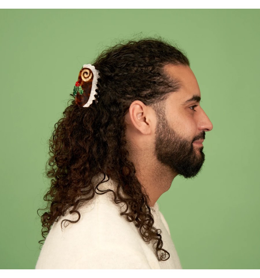 Pour une bonne dose d'originalité et de kitch, cette pince à cheveux bûche de Noël se porte pour toutes les occasions...mais surtout en fin d'année.