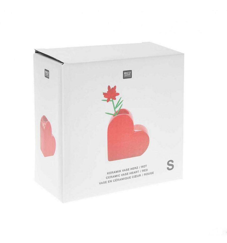 Un vase en céramique en forme de coeur rouge, imaginé par Rico Design.