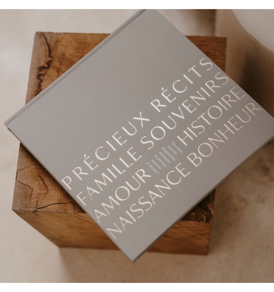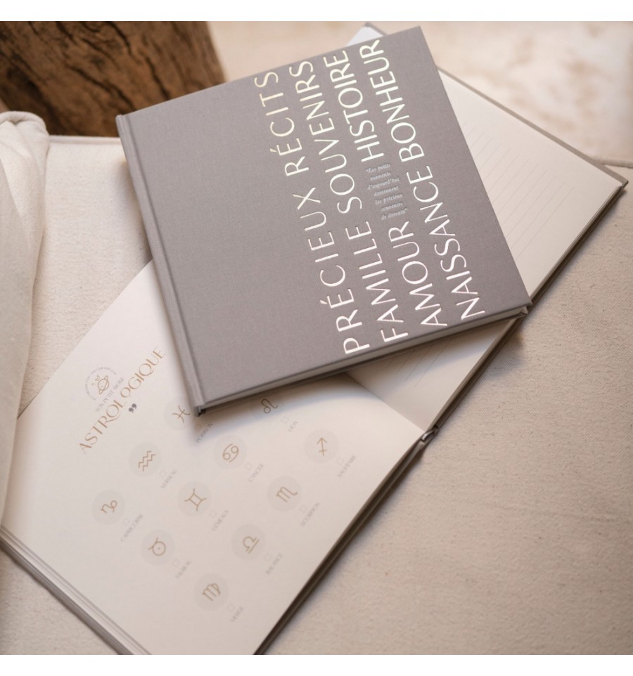 Ce joli livre couleur gris clair sera votre compagnon de grossesse et bien plus : vous pourrez y retracer absolument tout depuis le début, en passant par l'annonce jusqu'à la naissance de bébé, où vous immortaliserez l'histoire de ses premières fois et découvertes.