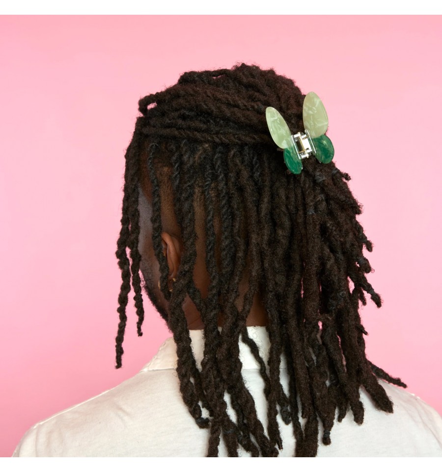 Ce papillon vert vif, aussi mignon qu’un vrai mais carrément plus pratique, vient agrémenter votre look avec une pincée de fantaisie printanière. Parfait pour dompter les mèches rebelles, illuminer un chignon ou donner l’illusion que vous êtes littéralement en connexion avec la nature (sans boue ni moustiques, on rassure).