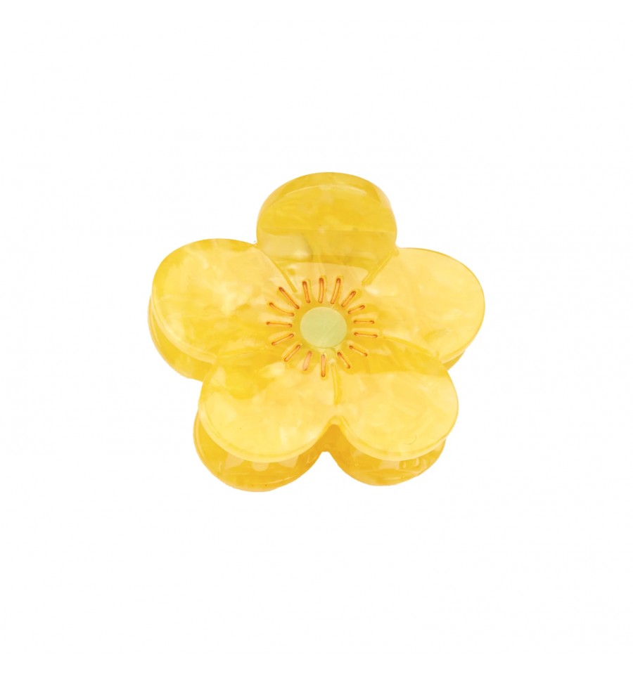 Cette mini pince signée Coucou Suzette a beau être petite par la taille, elle est grande par le style ! Avec son design délicat en forme de bouton d’or jaune éclatant, elle apporte une touche florale et ensoleillée à vos coiffures, qu’elles soient maîtrisées ou volontairement décoiffées.