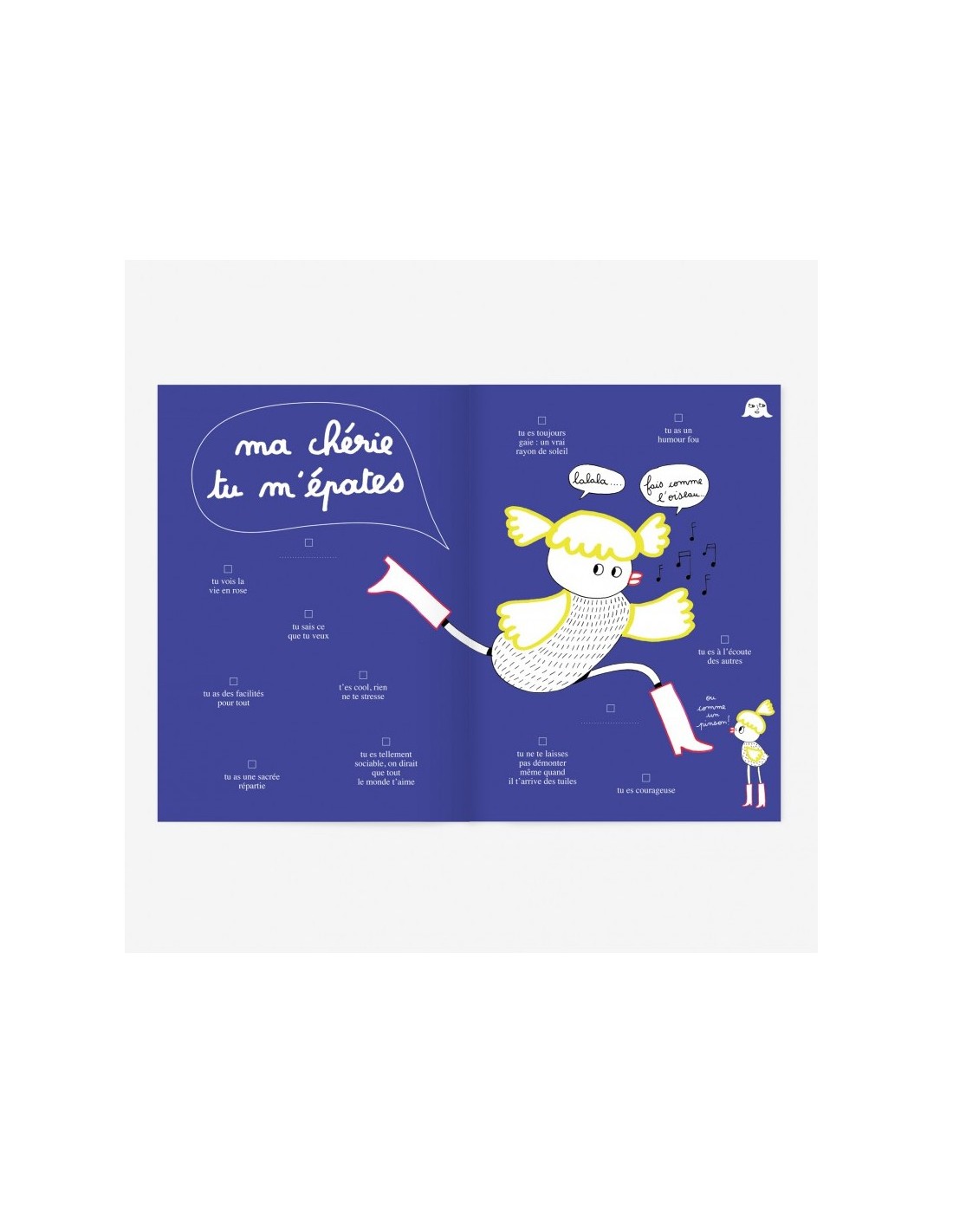 Minus est une joyeuse petite édition de cahiers d'activités pour les enfants. Minus éditions est pleine d'humour et d'idées pour amuser les enfants et les parents en abordant différentes thématiques dans la collection. On y retrouve les titres: "J'aime la préhistoire", " Oh les bêtises", " Si j'étais Président", "Même pas peur des araignées", "Vive la poésie", "J'aurais voulu être un artiste". Autant de mondes à aborder avec bonheur, quand vous lirez les petits extraits de ces pages vous serez séduit à coup sûr. Au fil de ces cahiers vous vous laisserez porter par la créativité débordante, pleine de bonnes surprises à l'humour décalé qui feront rigoler toute la famille. Il existe aussi le cahier de grossesse "9 mois à t'attendre", un petit cadeau parfait pour une copine future maman. Construits sur le principe de créer du lien, le pari est réussi, on lit, on se lie, on partage, on s'amuse et on apprend. A découvrir à tout prix!