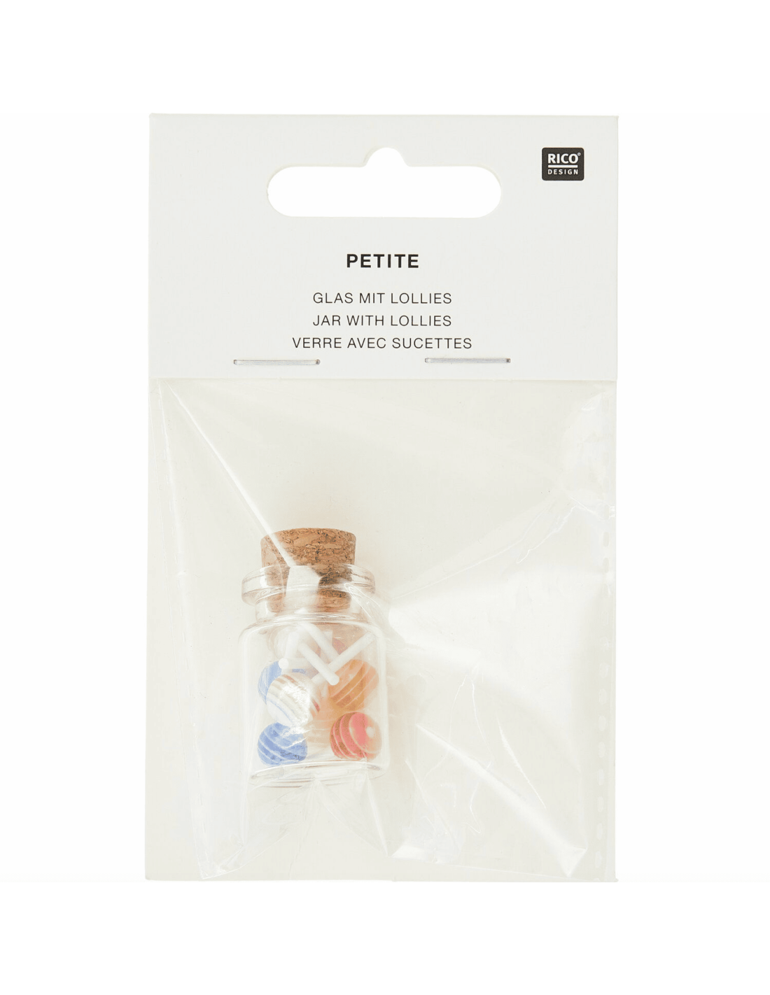 Imaginées par Rico Design pour la saison hivernale et ses fêtes : ce flacon en verre miniature contenant des sucettes sera parfait en déco.