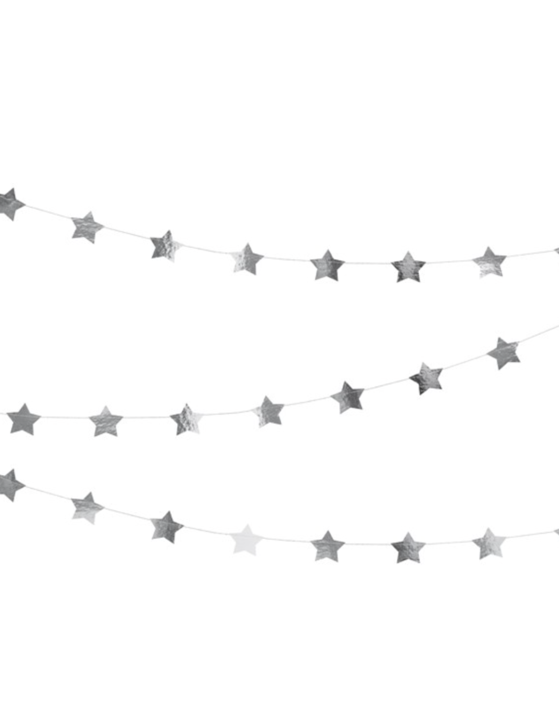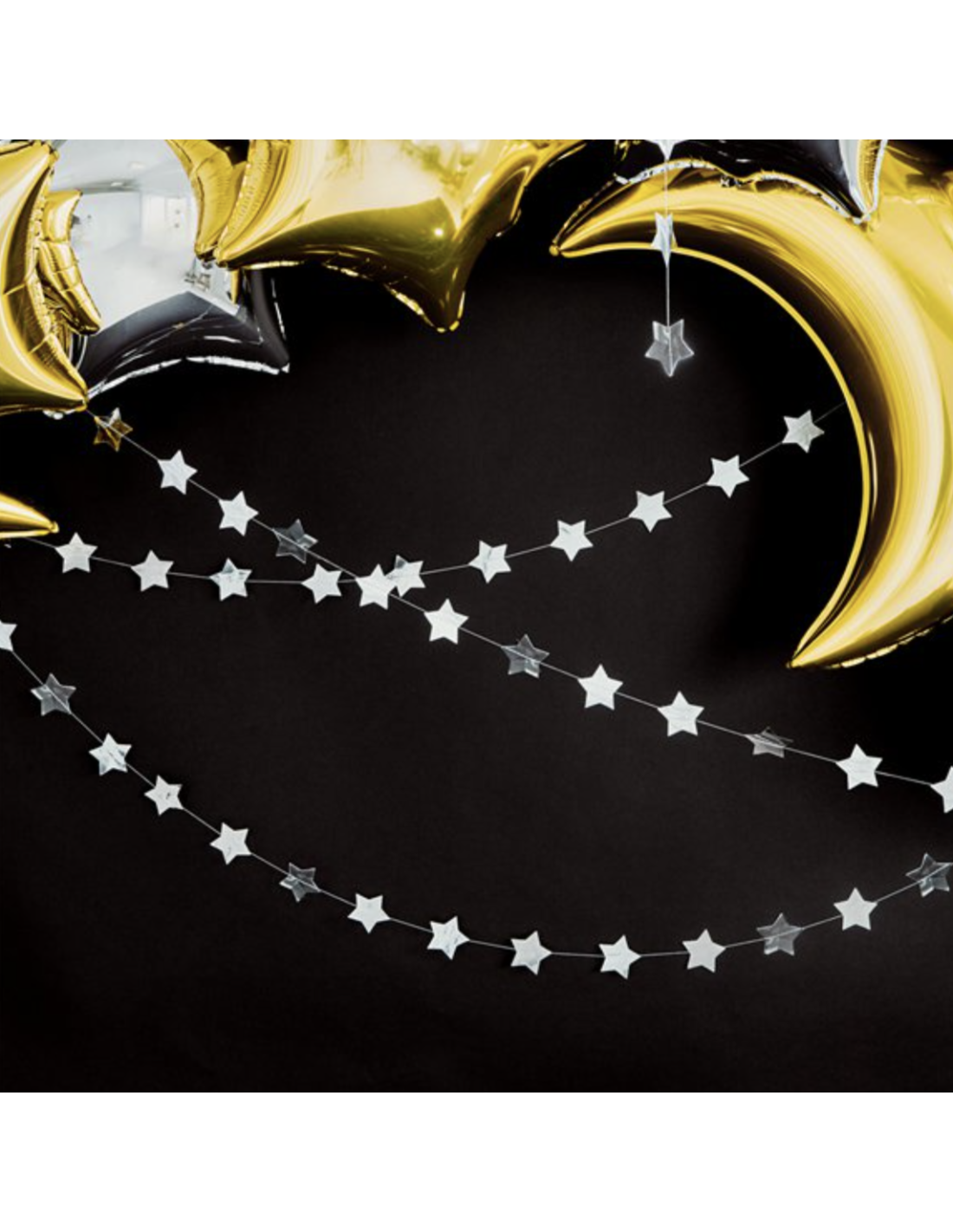 Une jolie guirlande en papier en forme d'étoile argentée, signée Party Déco.
