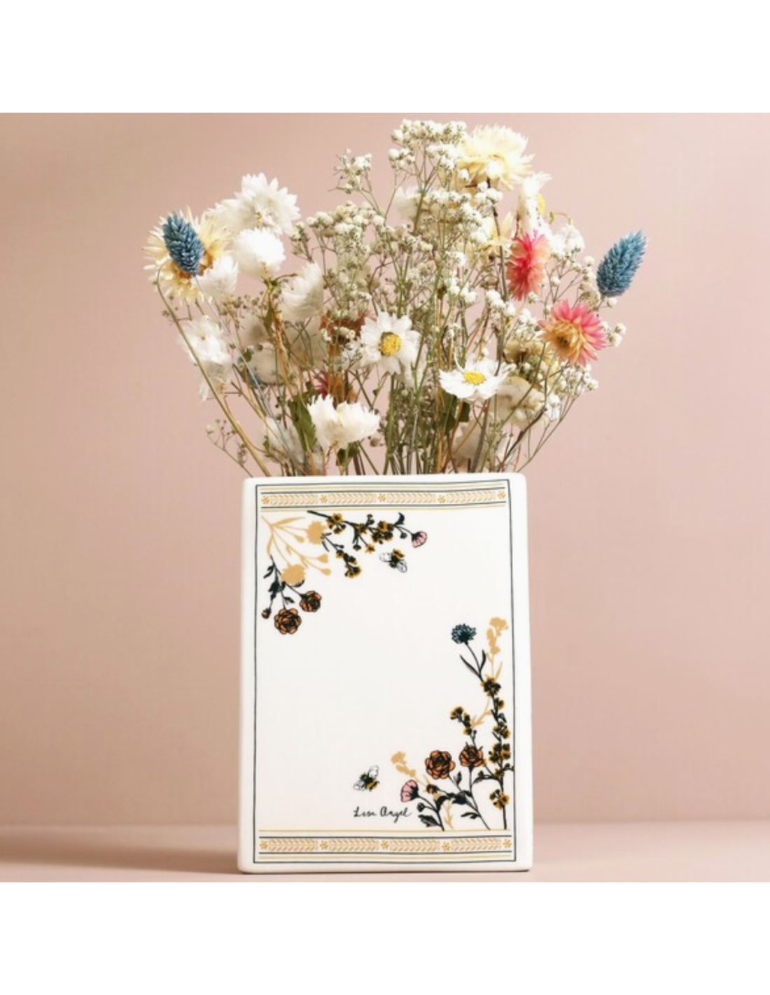 Lisa Angel nous propose un vase en céramique en forme de livre qui sera parfait pour réaliser une déco d'intérieur et pour y accueillir un bouquet de fleurs. Ce rectangle en forme de livre est blanc écru, dessus est inscrit : "The little book of flowers" illustrated by Lisa Angel.