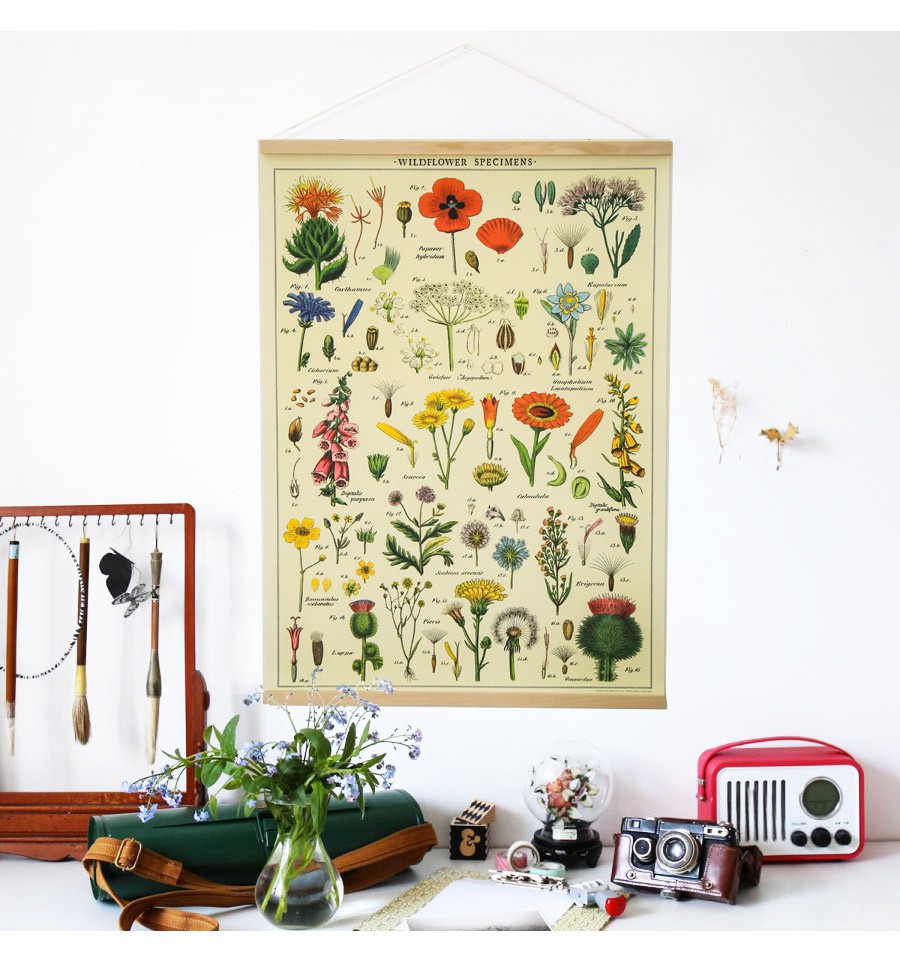 Une affiche rétro pour apprendre le nom des fleurs sauvages en anglais tout en décorant son intérieur !