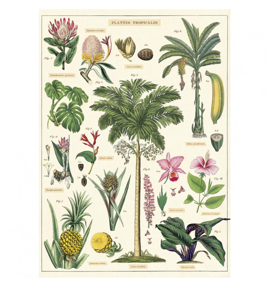 Affiche pédagogique rétro illustrée de plantes tropicales. Cavallini réédite des affiches anciennes pour décorer nos intérieurs.