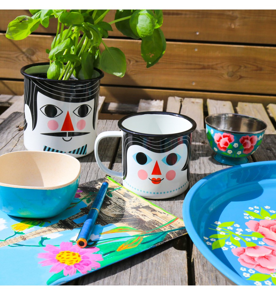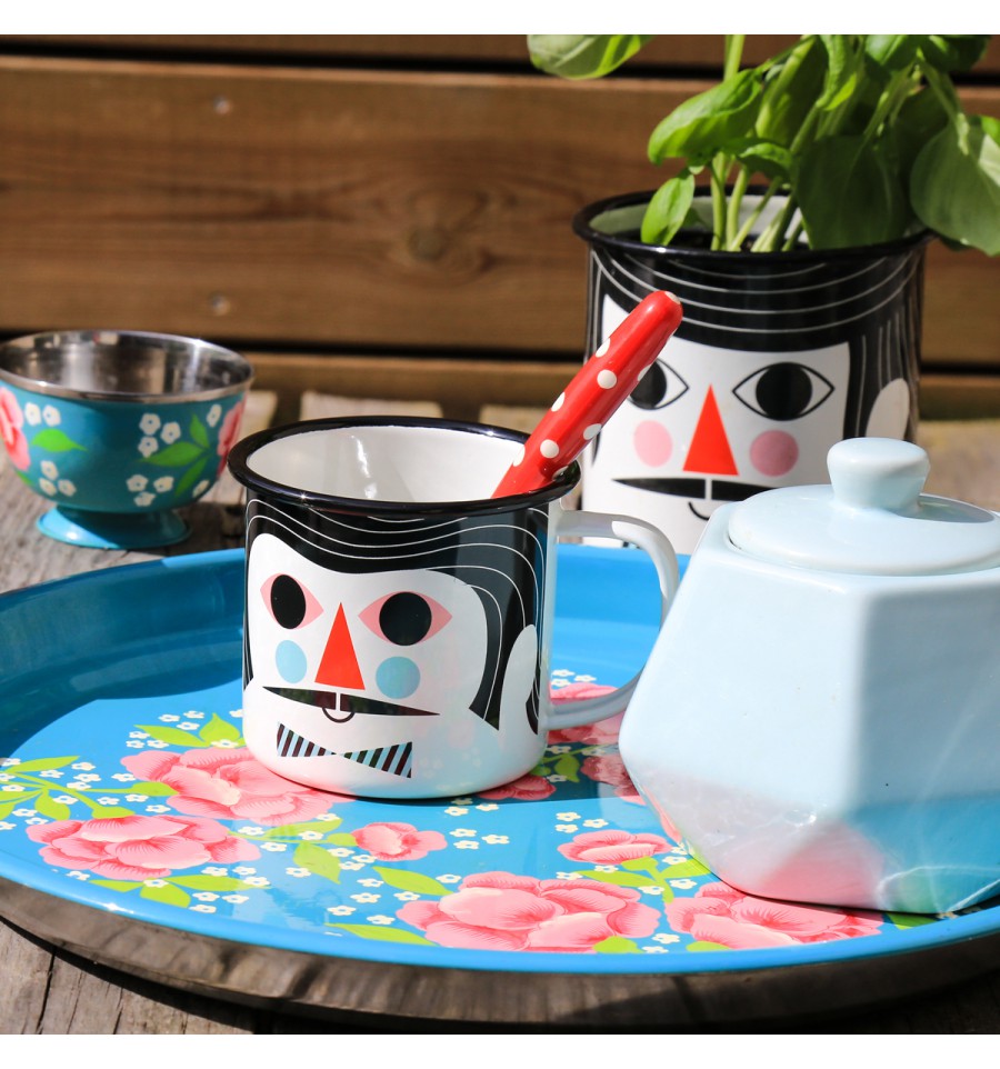Une tasse a 2 faces avec d'un côté une femme et de l'autre un homme dessinés par Ingela arrhenius. Cette tasse est en métal émaillé. Tasse vendue à l'unité.