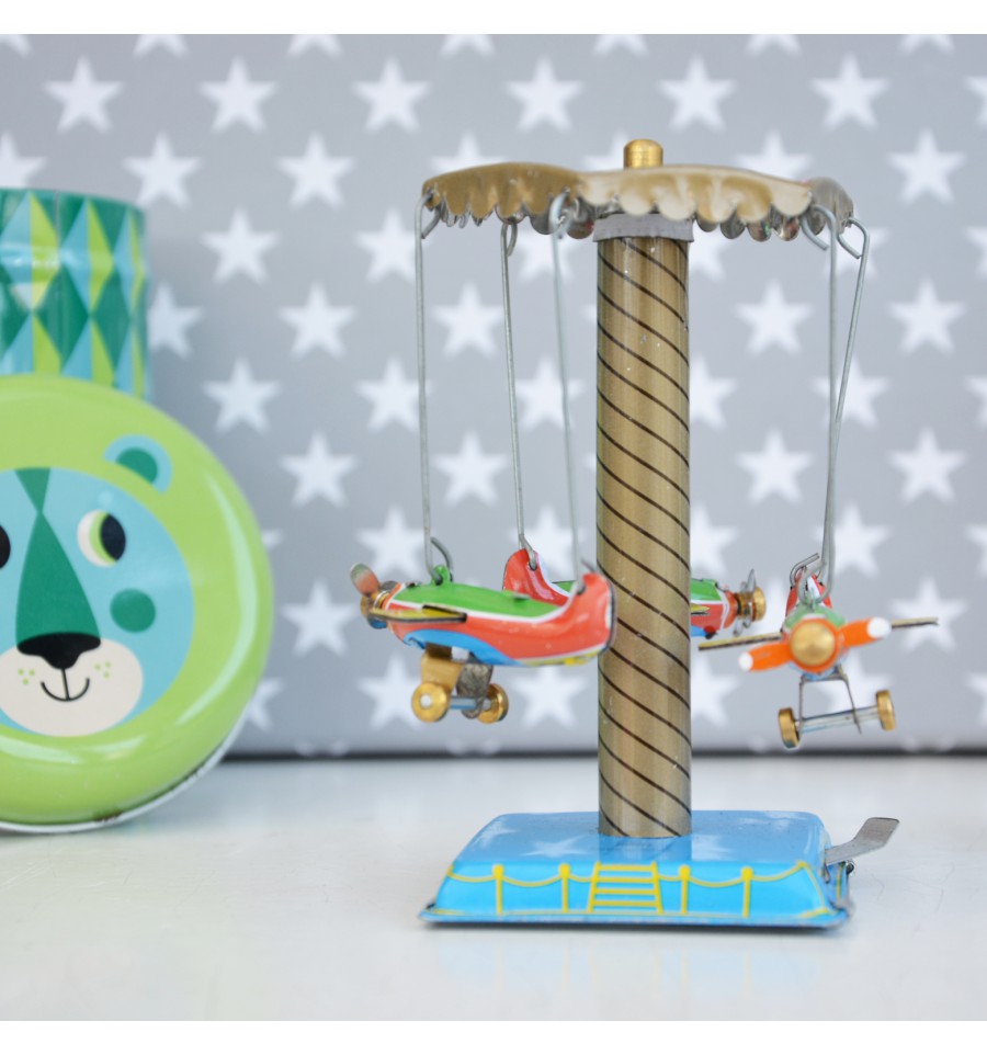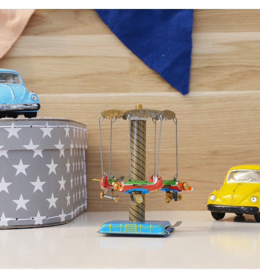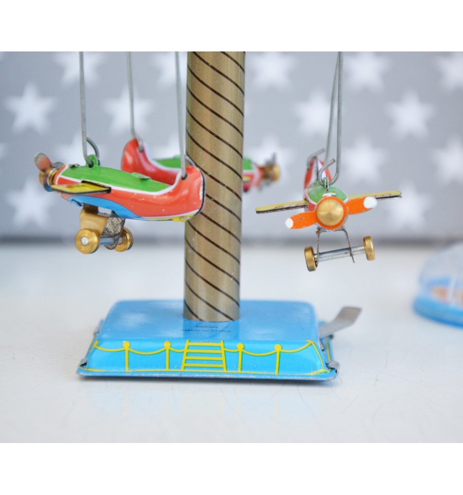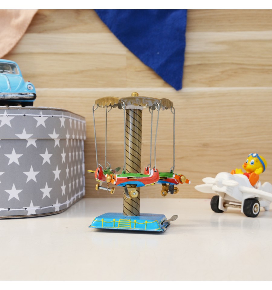 Manège mécanique au look vintage, composé de 3 avions.