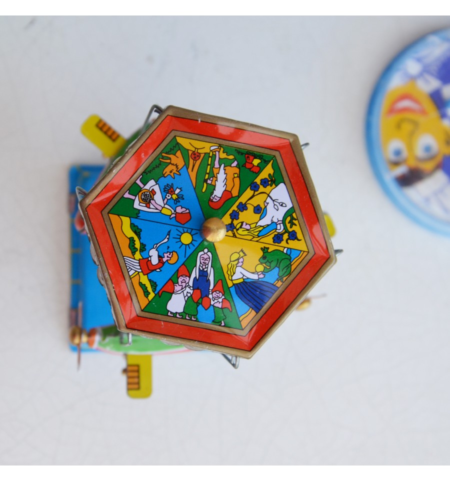 Un joli carrousel qui tourne en activant un petit levier en métal. Les 3 avions décollent et volent quelques minutes avant de redescendre. Cet objet décoratif ravivera vos souvenirs d'enfance.