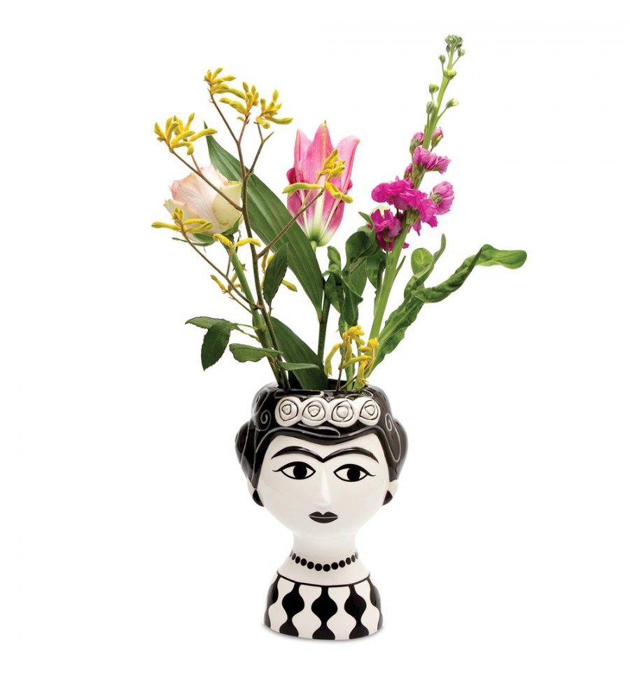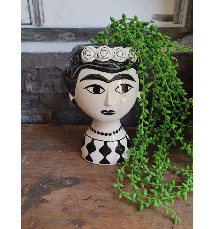 Vase original en céramique en forme de tête de femme mexicaine, dessiné par la célèbre illustratrice suédoise Ingela Arrhenius. Son design en noir et blanc met en avant les traits du personnage et lui confère un look unique.