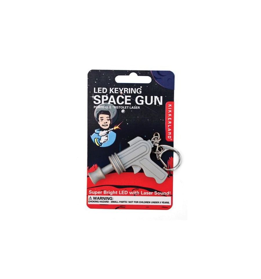 Cet porte-clés en forme de pistolet laser s'allume et fait du bruit lorsqu'on appuie sur le bouton. Aucun risque de faire des blessés.