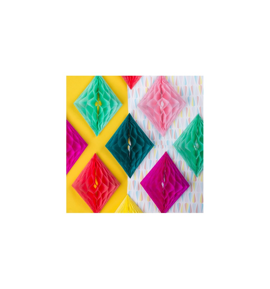 Nous vous proposons ces superbes losanges Artyfete en papier alvéolé à suspendre.