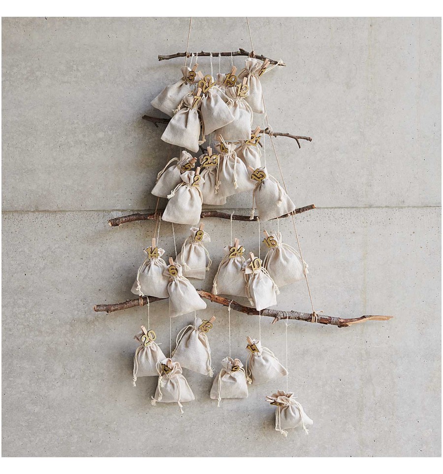 Ces 24 pinces à linge en bois sont numérotées de 1 à 24.