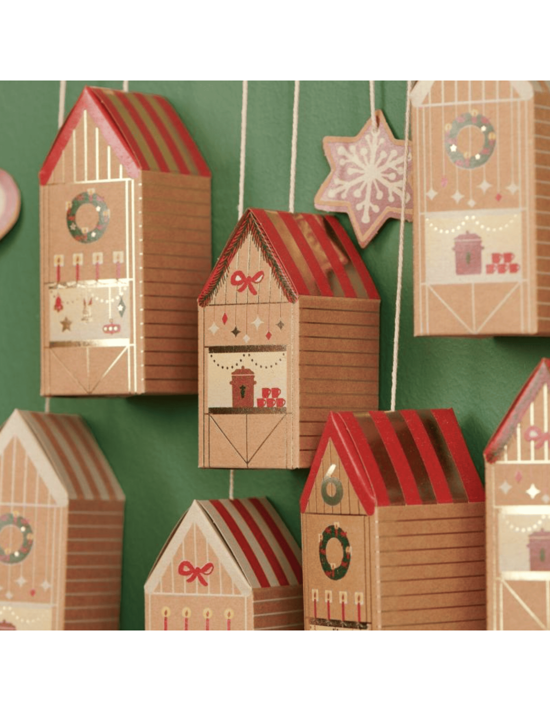 Idéales pour composer vous-même votre calendrier de l'avent, ces boites en carton en forme de maisons se montent très simplement.