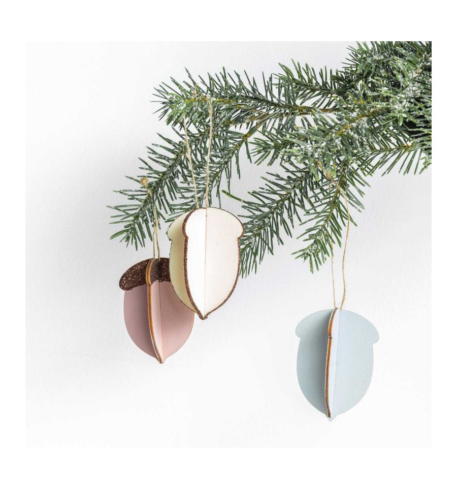 Ce set de 3 pendentifs en forme de glands est en bois naturel non verni. Idéal pour les customiser selon vos envies. Chaque gland est constitué de 2 pièces à assembler pour former un gland en 3D.