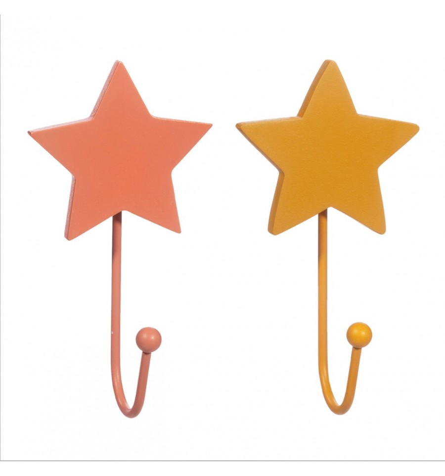 Ces patères en bois et métal en forme d'étoile les invite à y déposer leurs vêtements et accessoires.