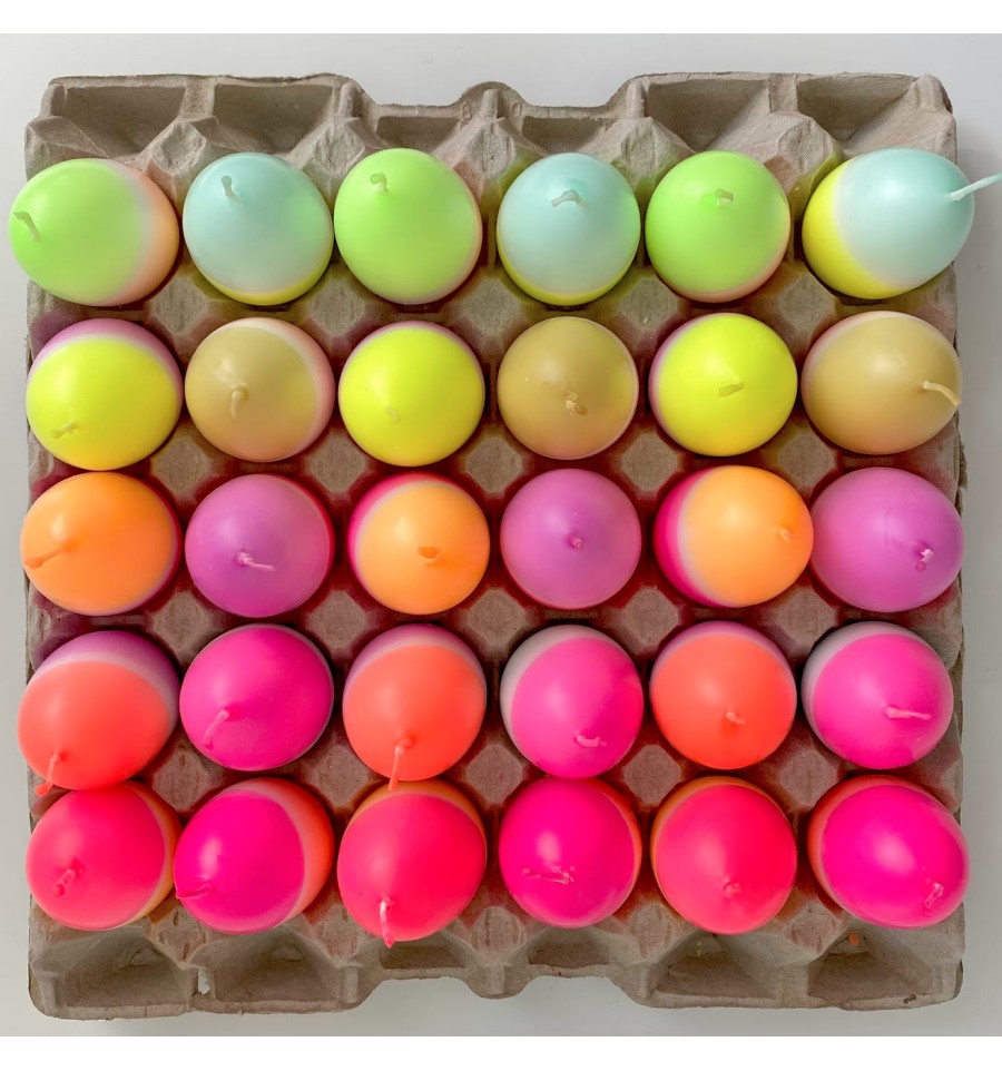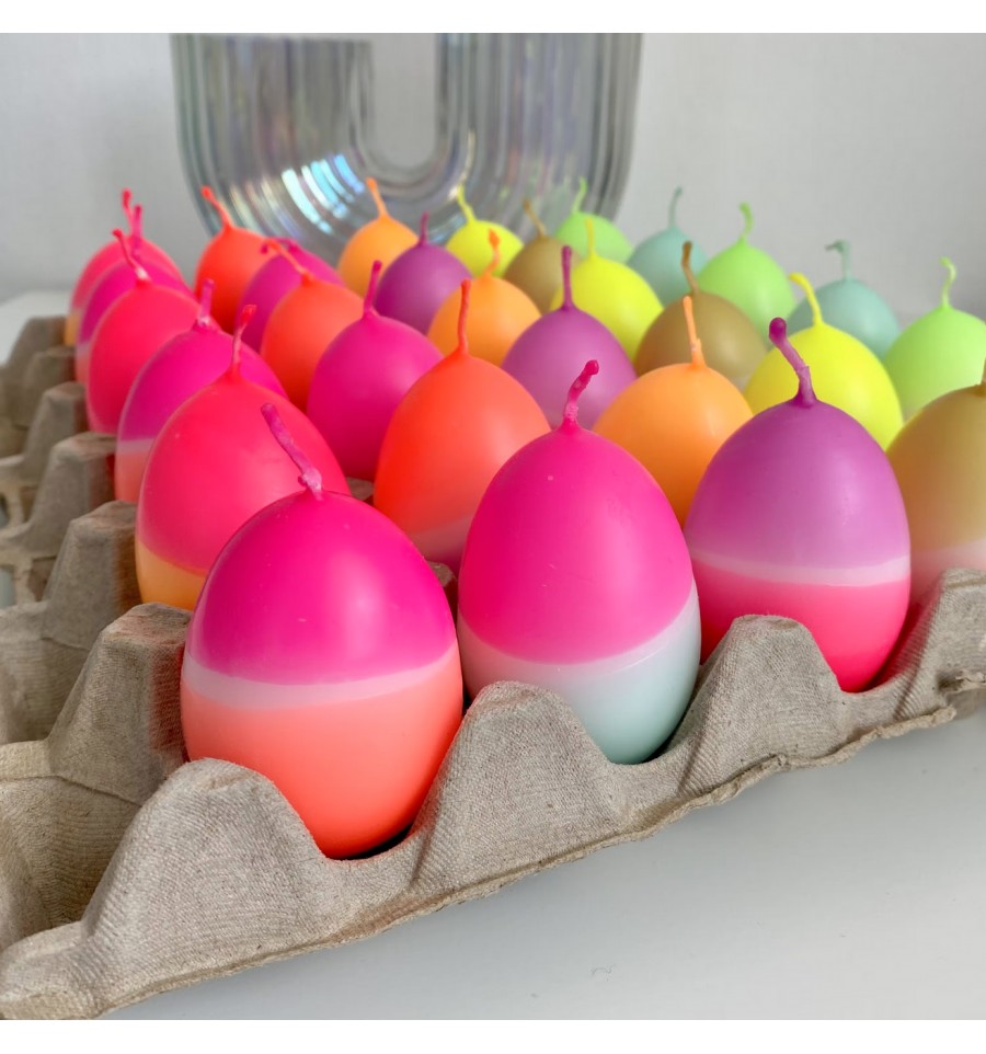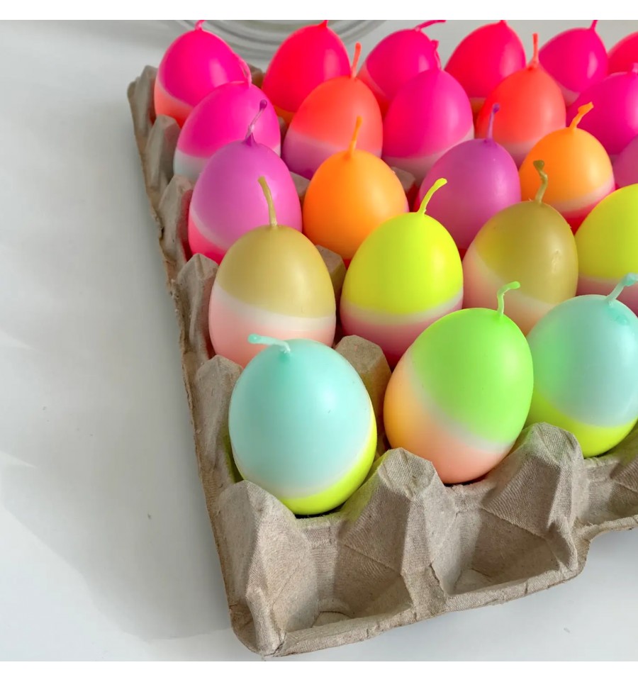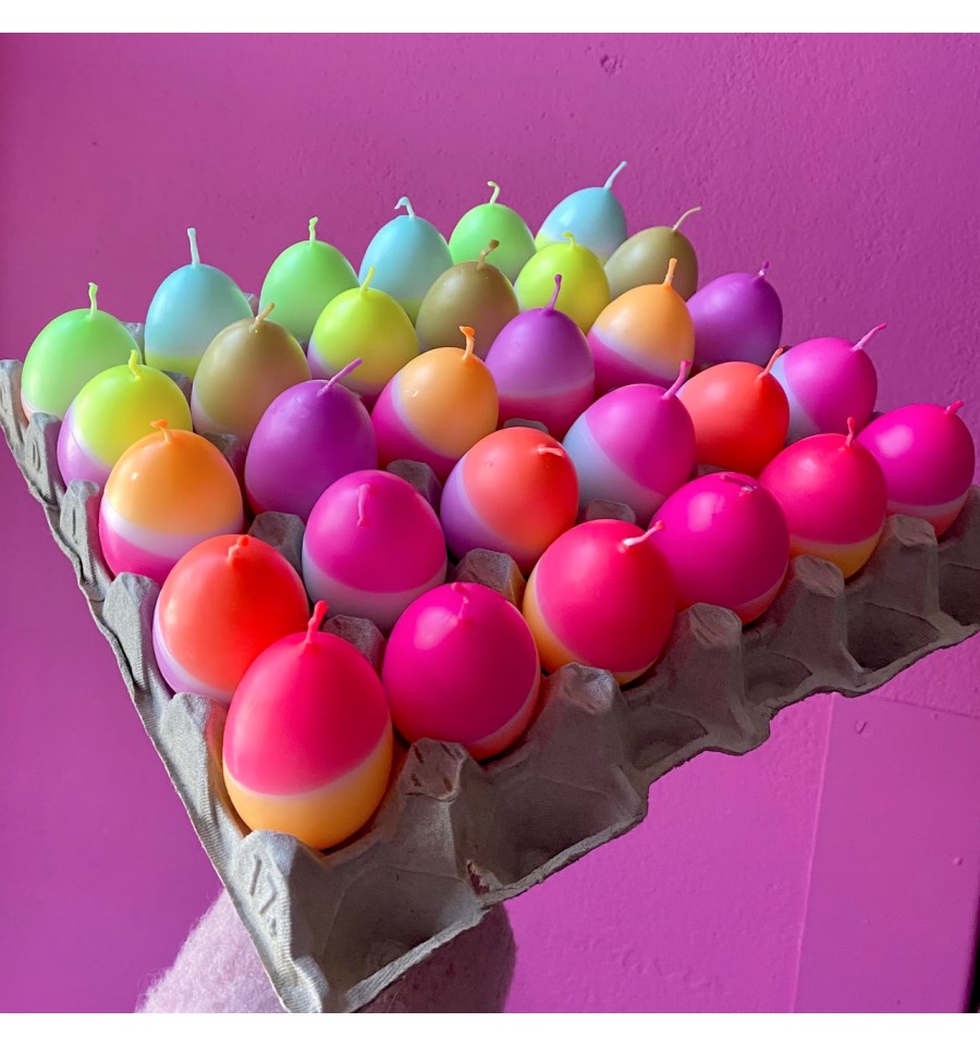 Pinkstories a imaginé ces bougies en forme d'oeufs colorés au look flashy néon.
