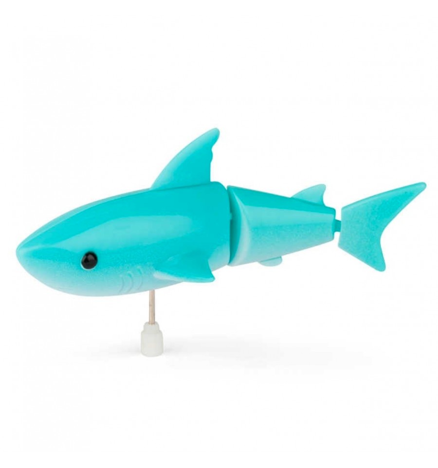 Avec son aileron dorsal et son corps articulé, ce requin mécanique à remonter va mettre de l'animation dans votre baignoire.