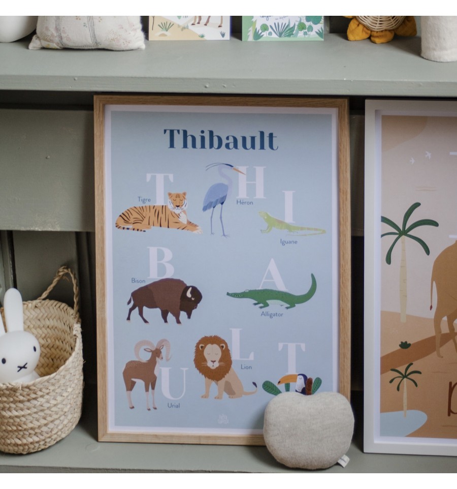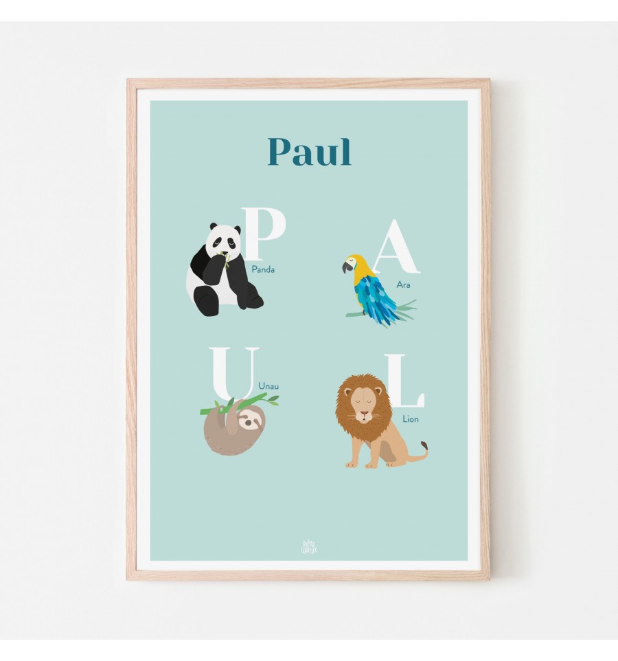 Affiche prénom personnalisée animaux - Papier Curieux