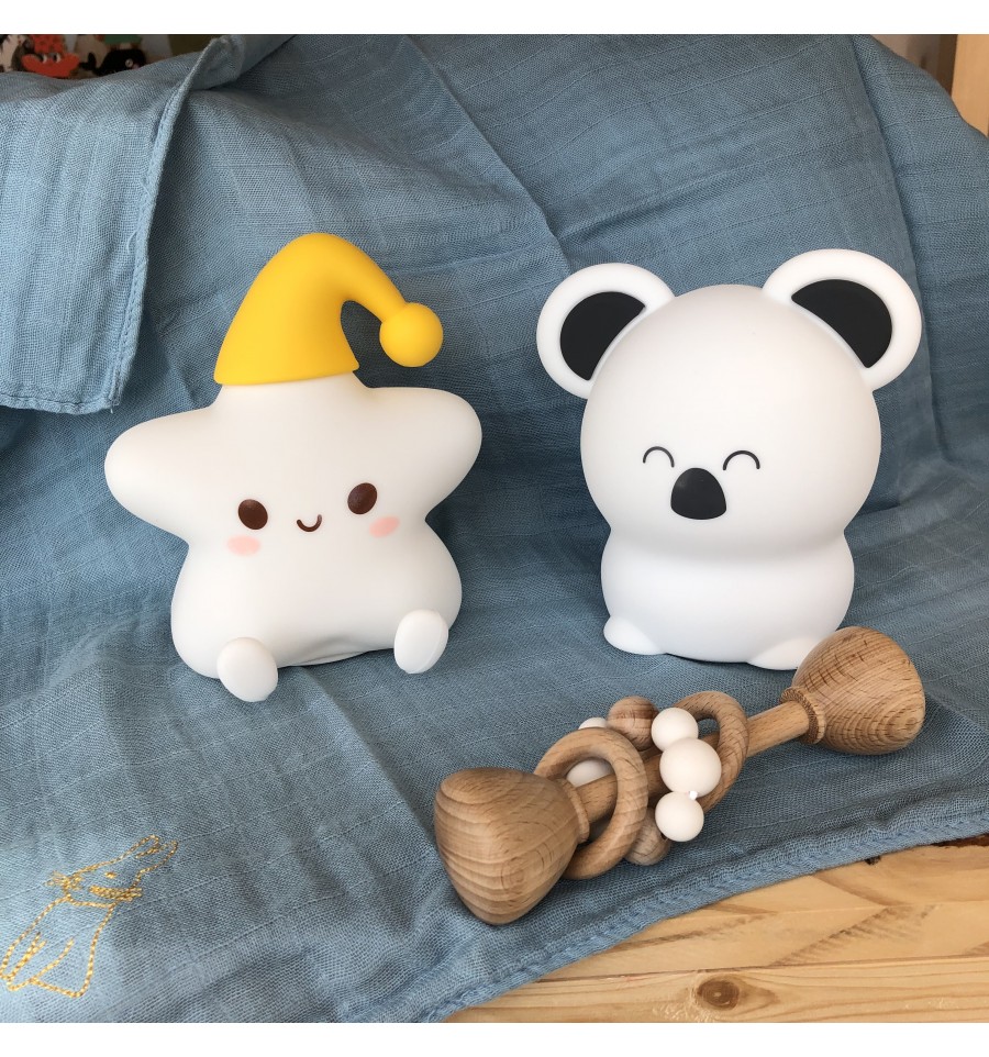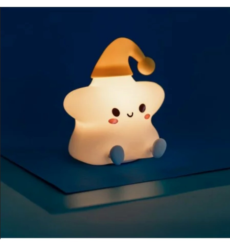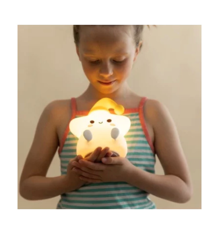Cette veilleuse souple en forme d'étoile avec son bonnet de nuit jaune fera le bonheur de vos enfants !