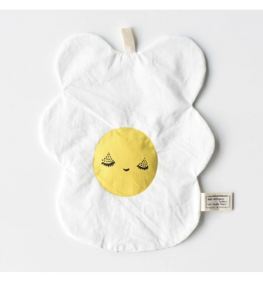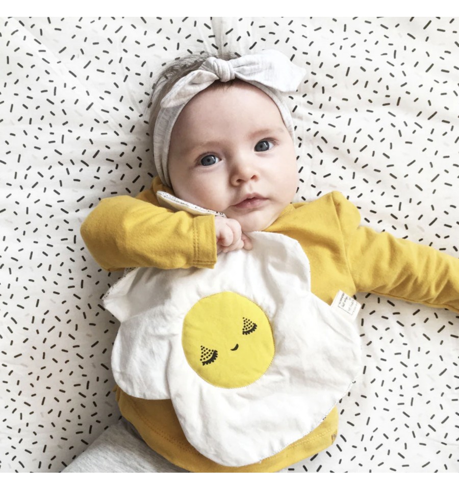 Idéal pour le développement de bébé, découvrez cet adorable œuf au plat d'éveil parfait à attraper, à manipuler, à froisser pendant des heures !
