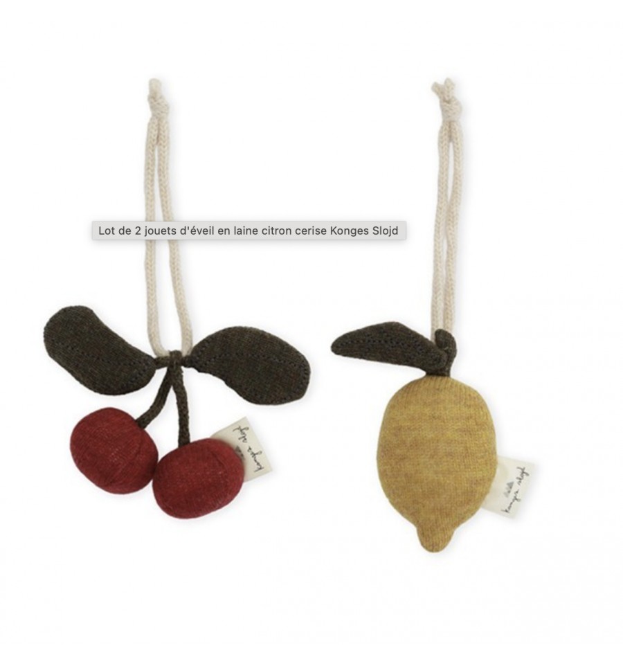 Ce lot de deux jeux d'éveil en forme de citron et de cerise de la marque Konges Slojd est en laine.