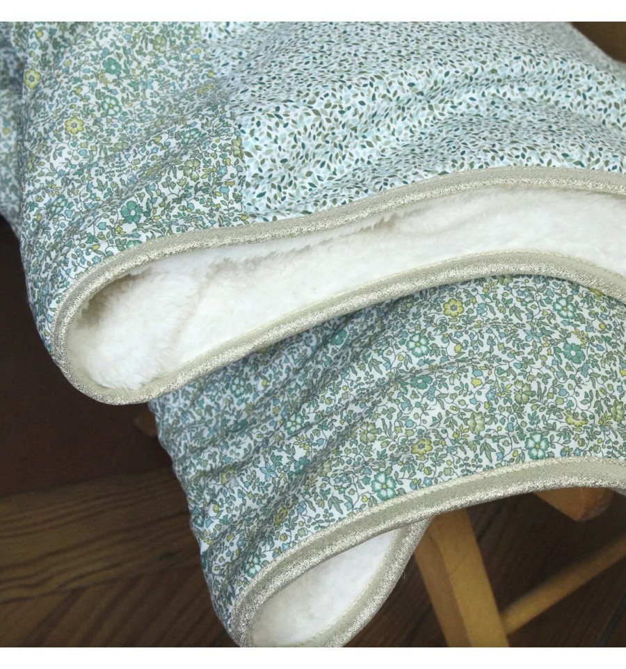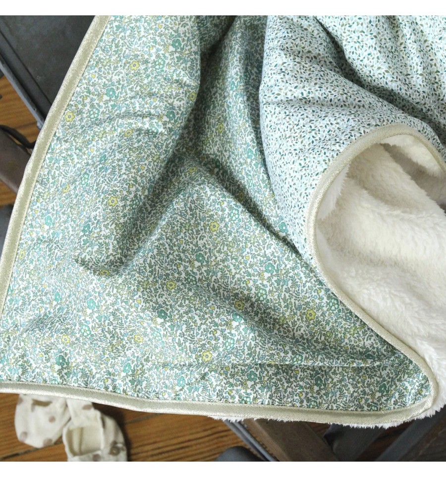 Elle est réalisée avec 2 tissus Liberty et entièrement doublée en laine polaire douce et chaude.
