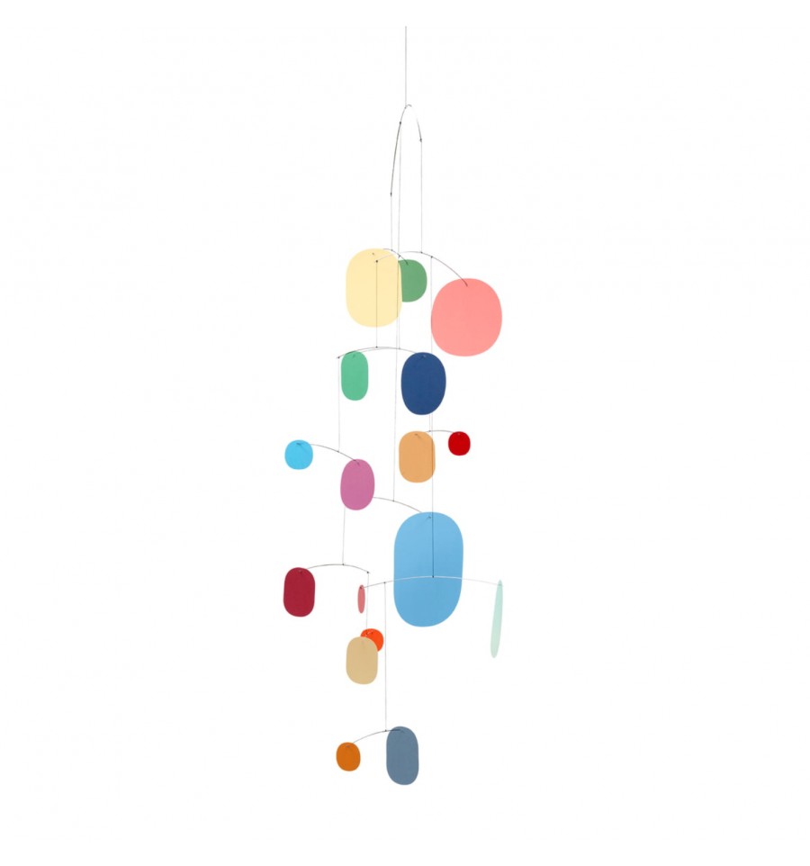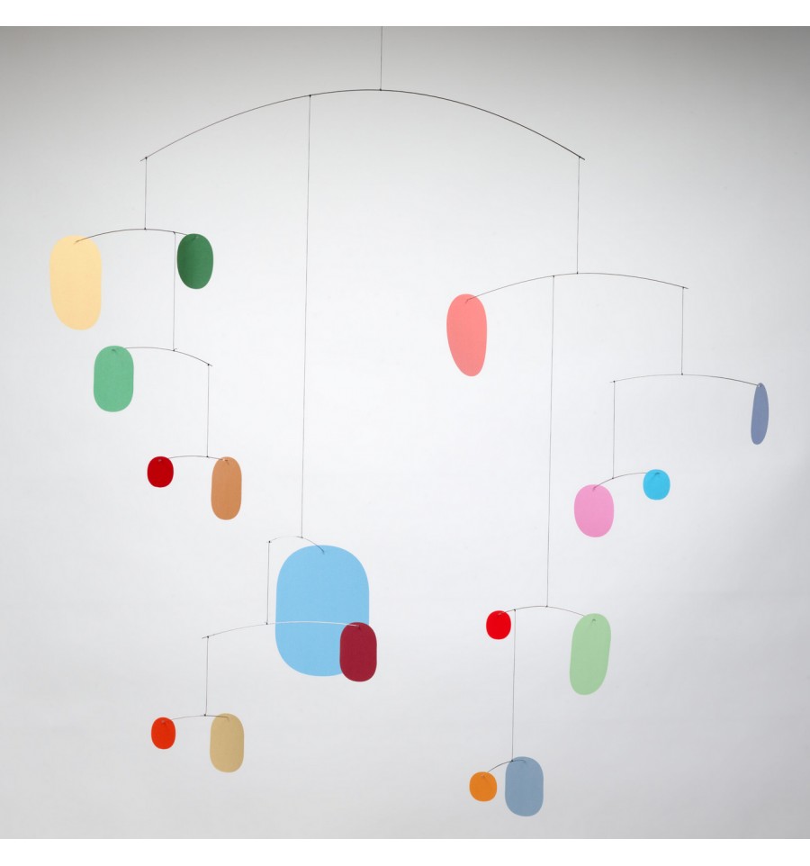 Ce mobile abstrait trés épuré et graphique est intemporel. Le moindre frétillement de l'air fera bouger ce mobile grâce à sa légèreté.