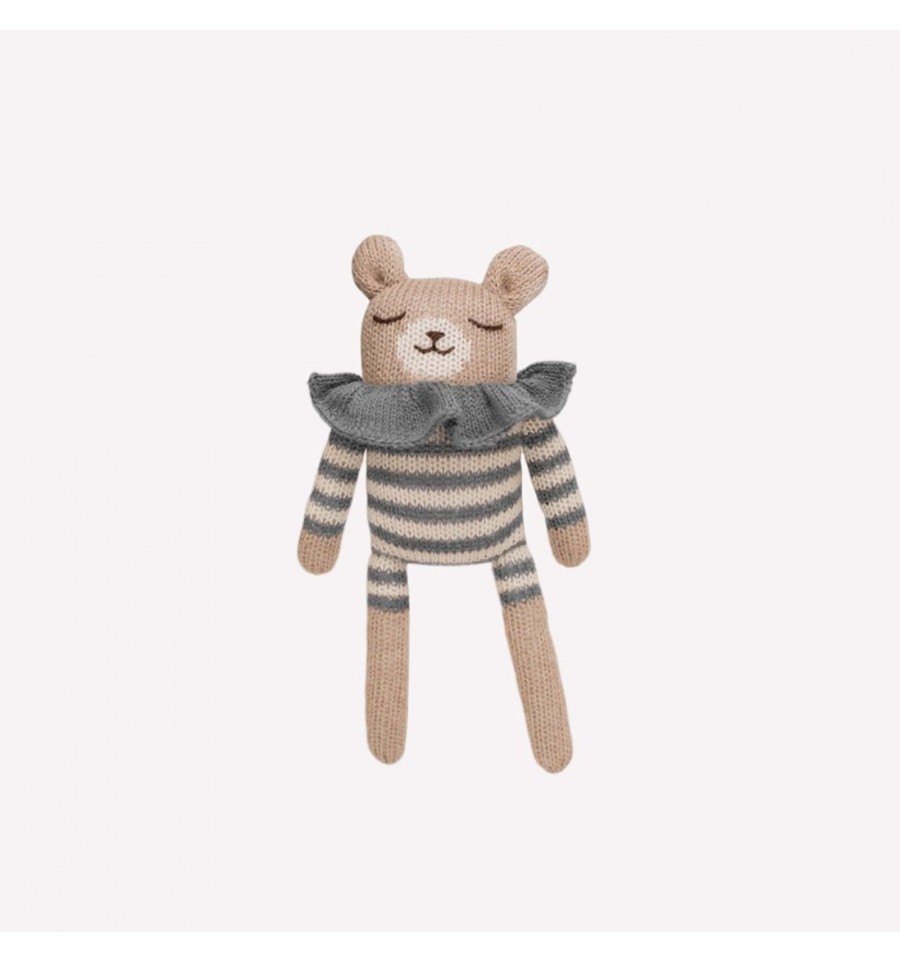 Doudou Ourson pyjama bleu à collerette - Main Sauvage