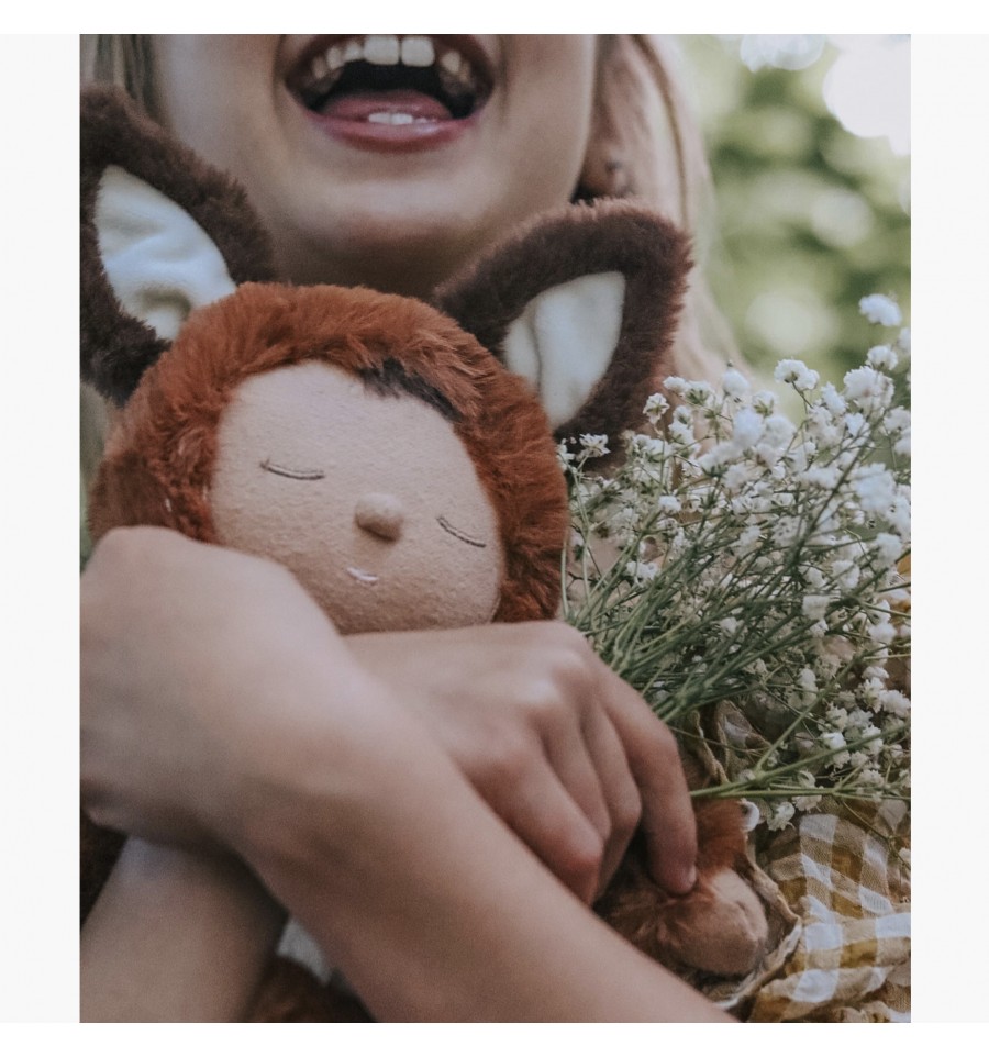 Voici le renard Finnley, on adooooore ses oreilles toutes douces qui sont marron foncé, sa couleur fauve et son petit arc-en-ciel cousu sur sa poitrine.