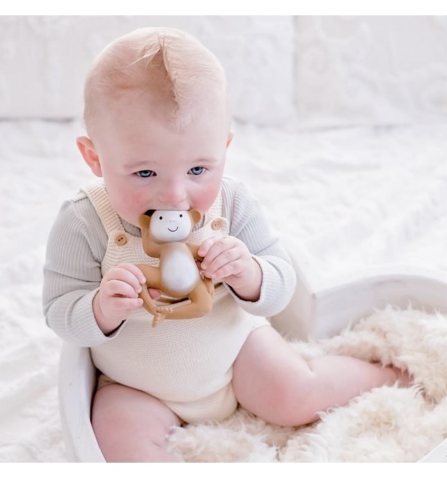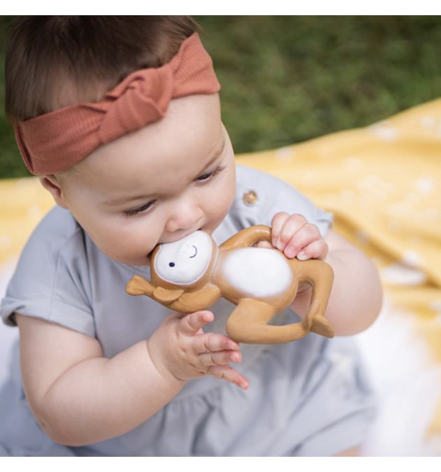 Ce jouet de bain Tikiri en gomme naturelle souple accompagnera votre enfant pendant des heures. En dehors de la baignoire, il pourra s'amuser avec, le mâchouiller et lui imaginer tout un univers.